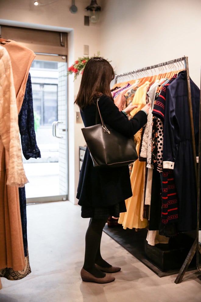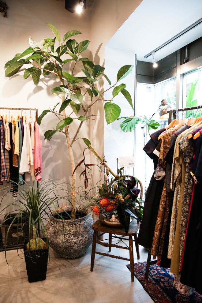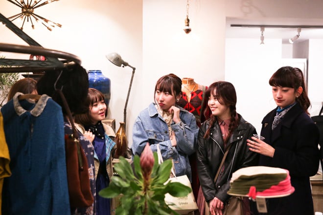 聞くと、系列店のグリモワールにも来店しているヴィンテージ好きのお客さんでした。気になる服を試着して、初めてのお買い上げ。この日は天候にも恵まれ、その後も来店客が絶えませんでした。