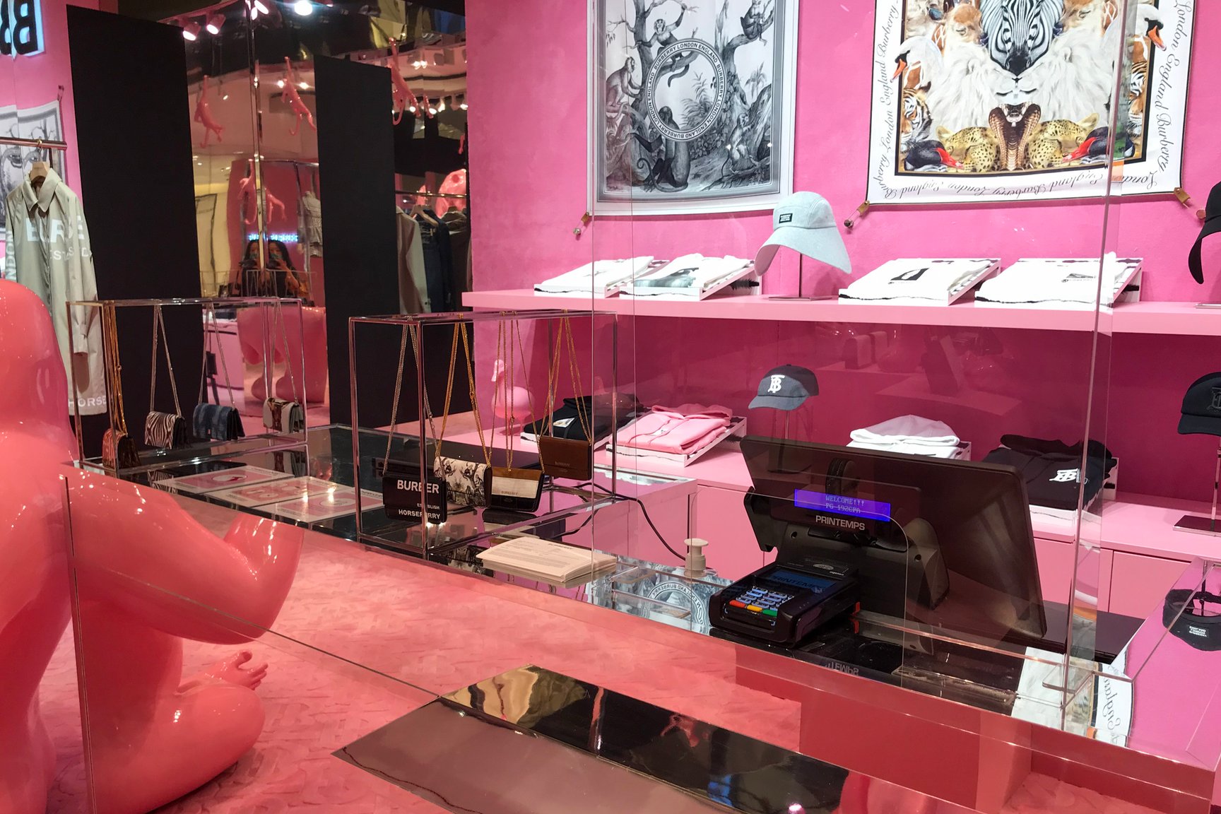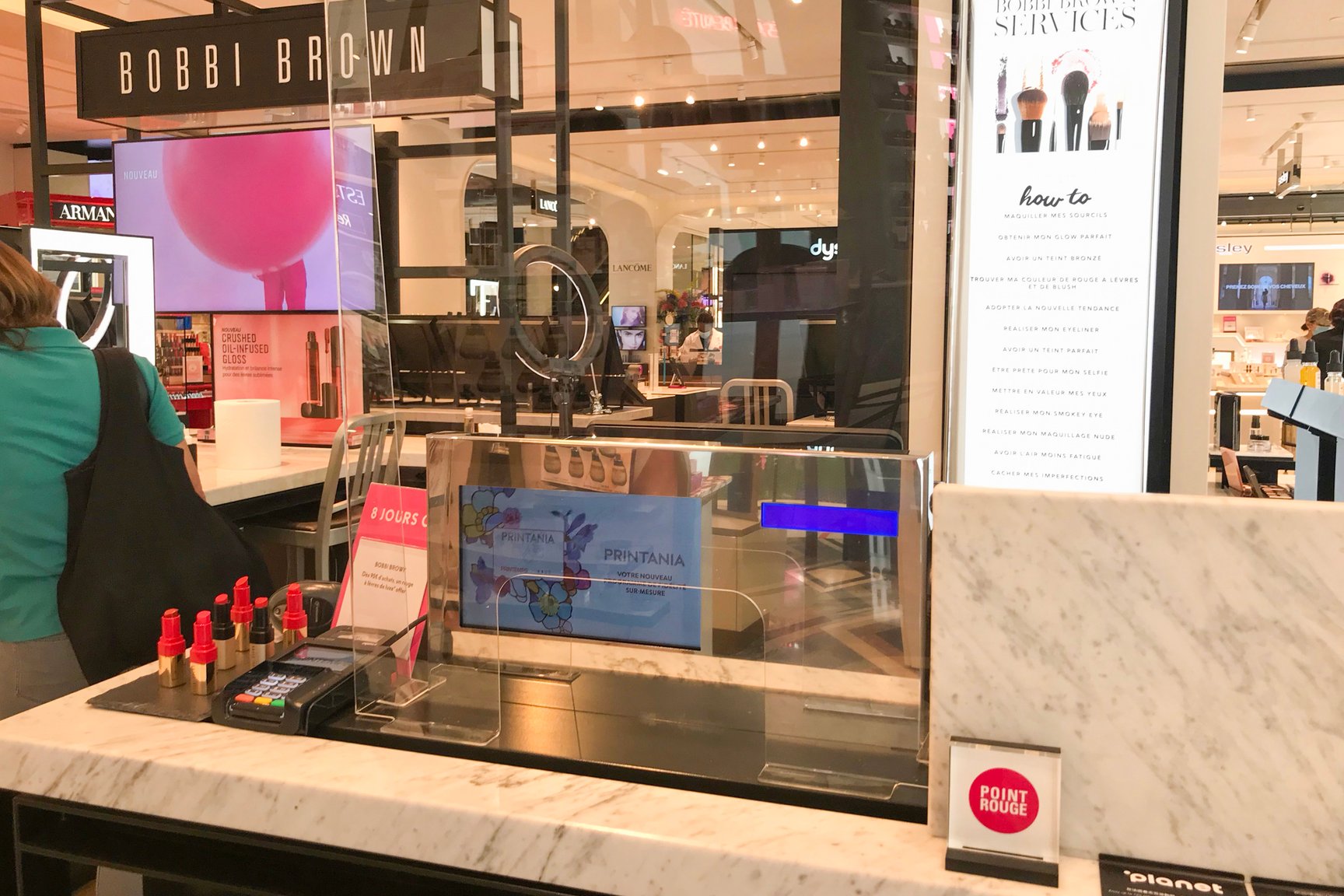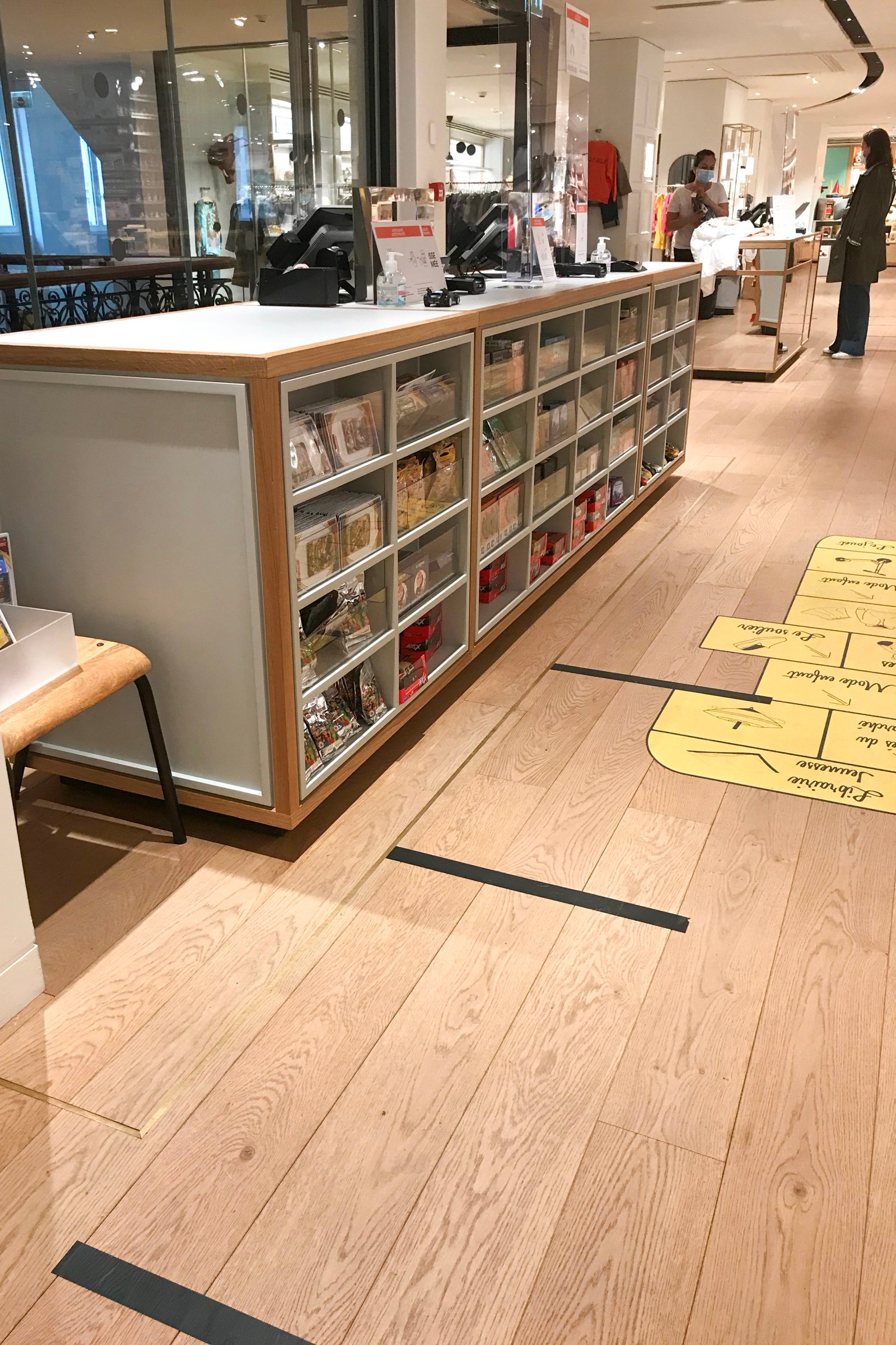 プレキシグラスでシールドされたプランタンのレジまわり