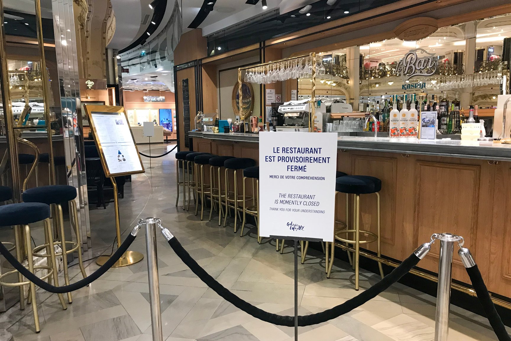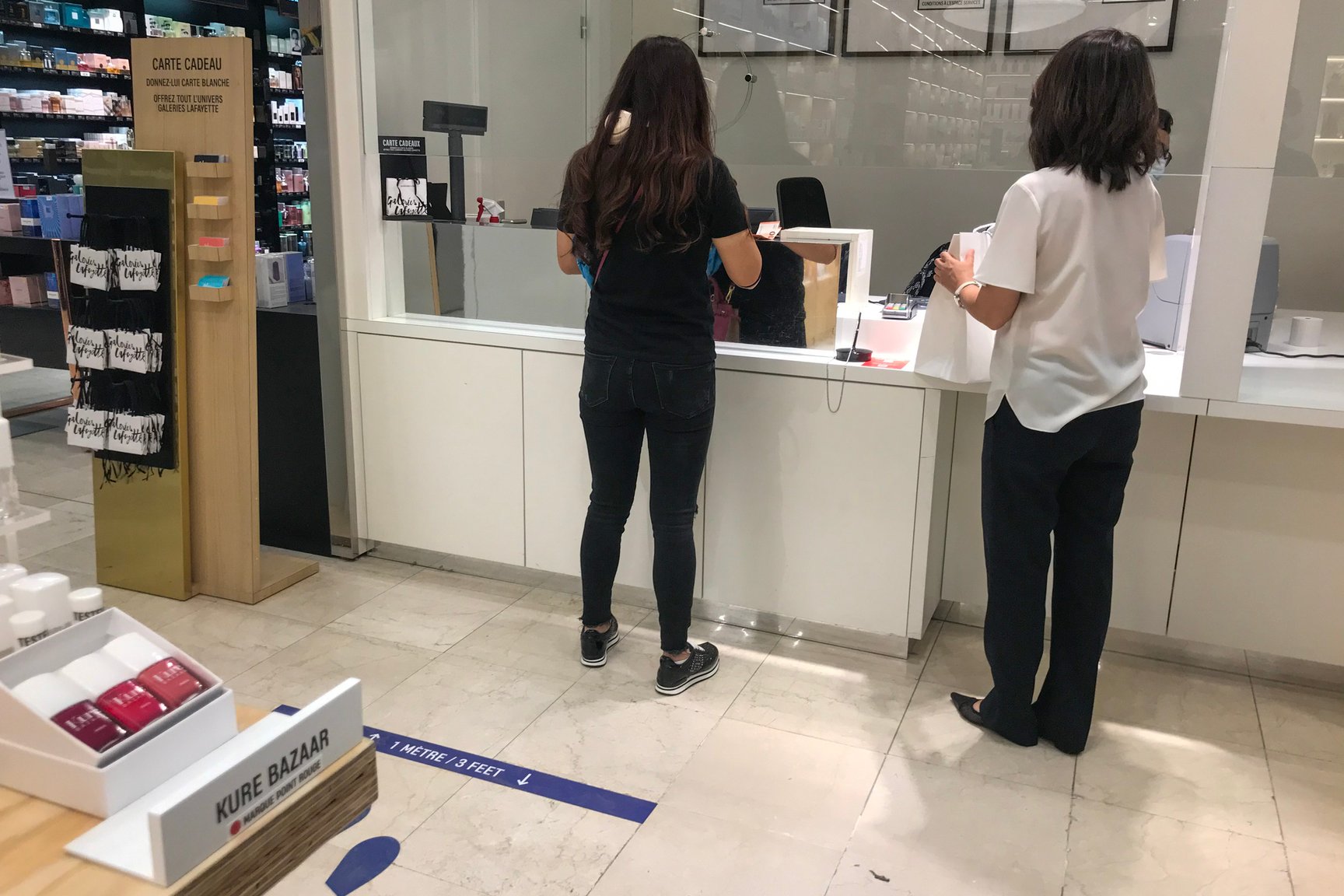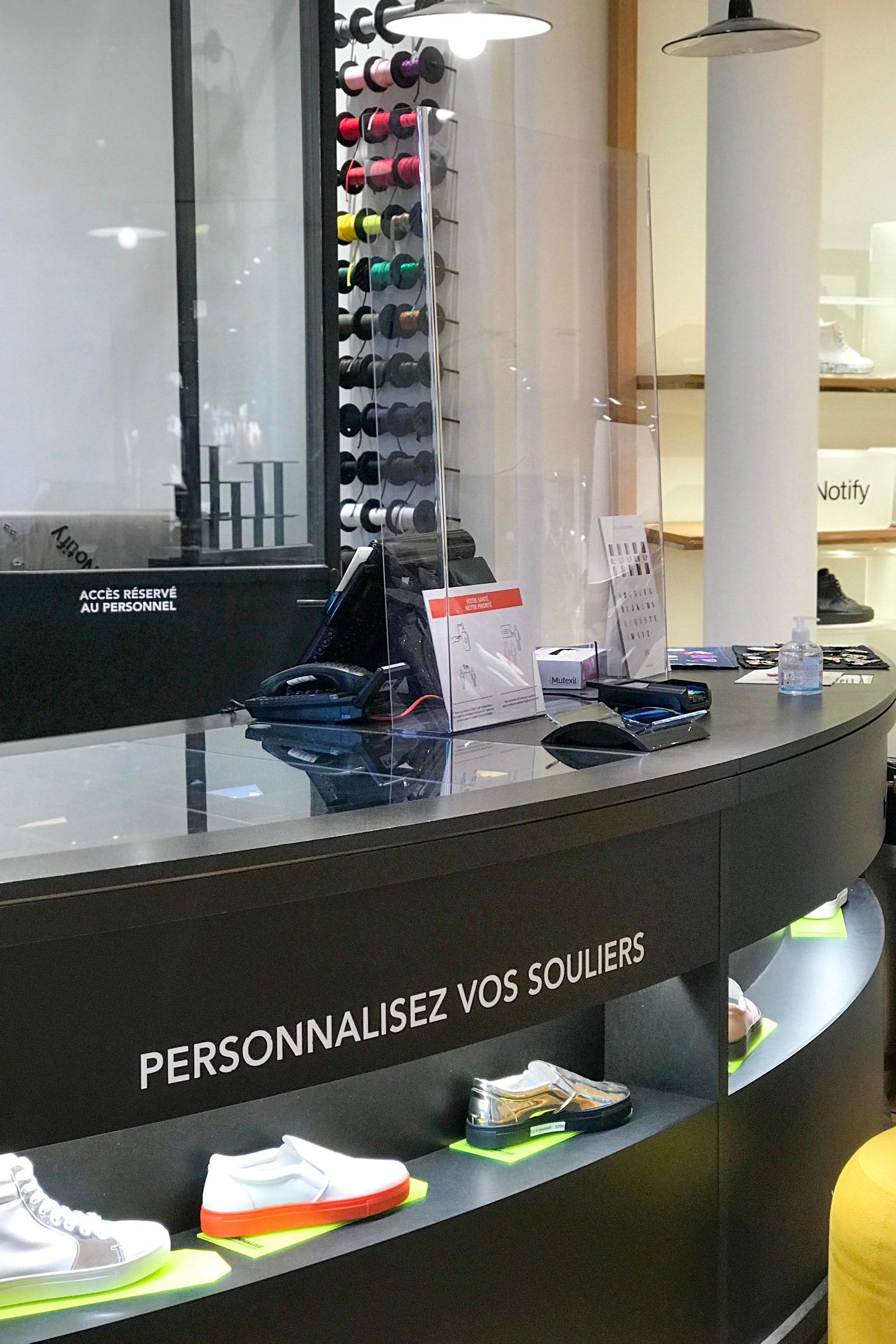 プレキシグラスでシールドされたプランタンのレジまわり