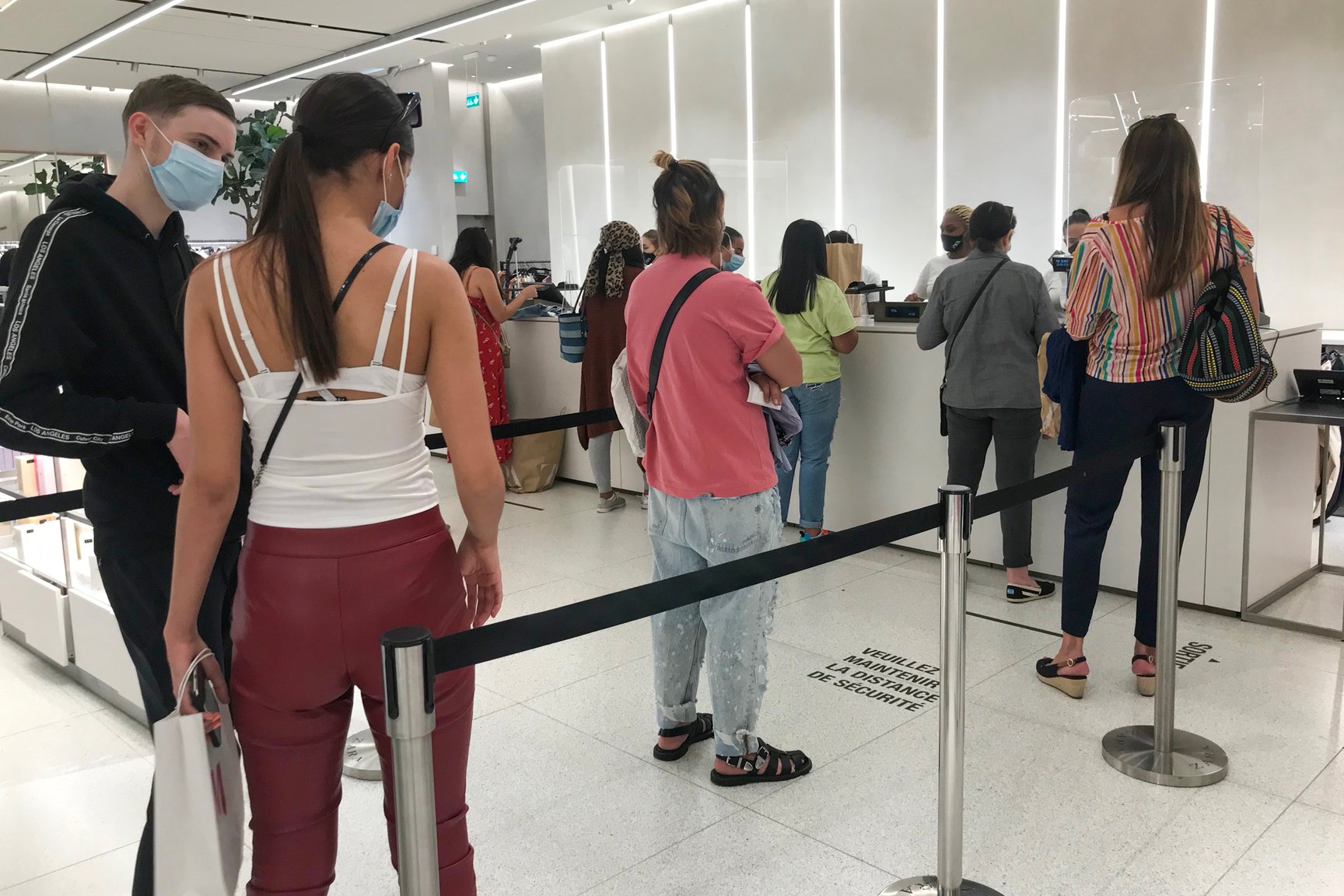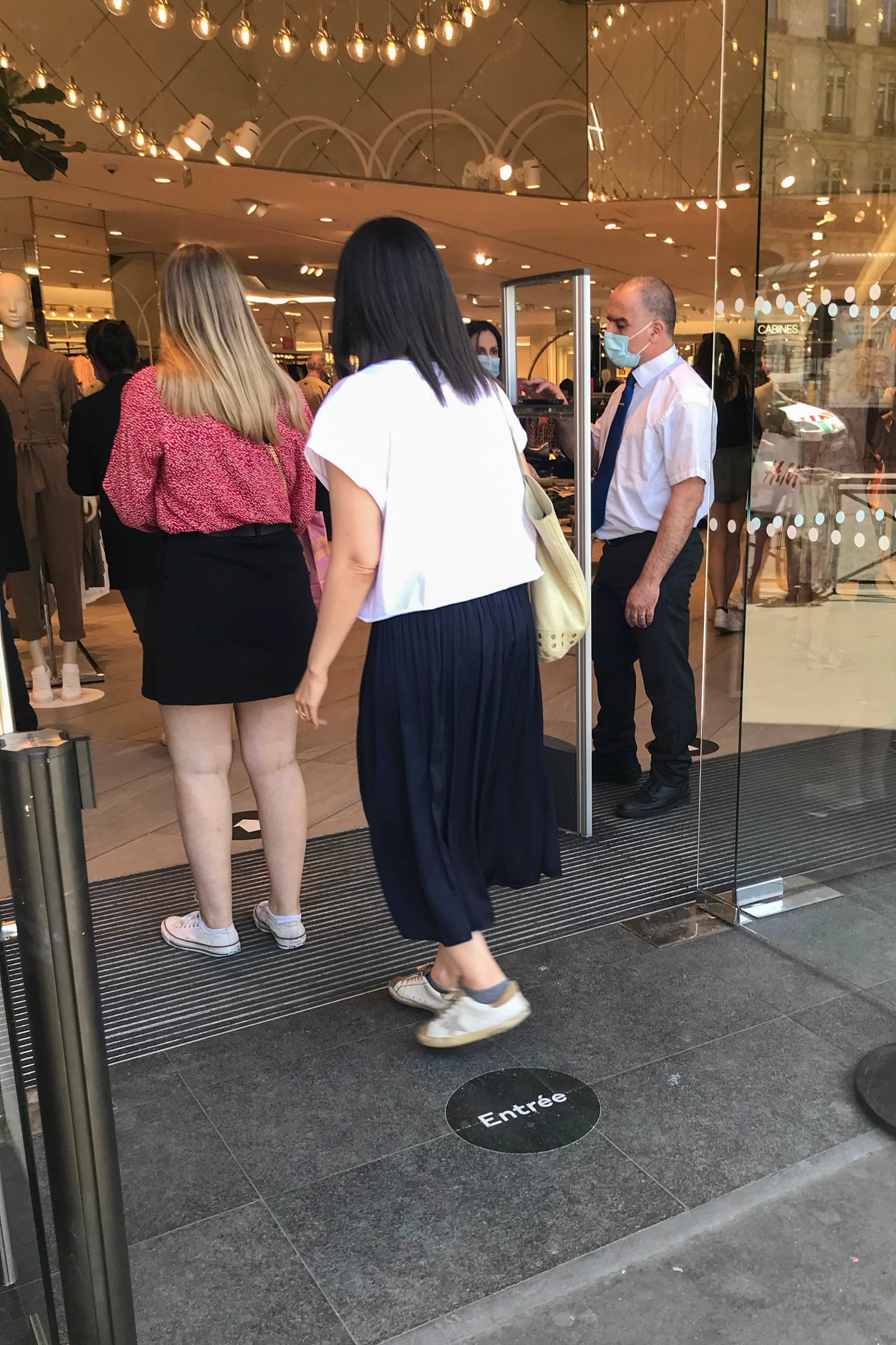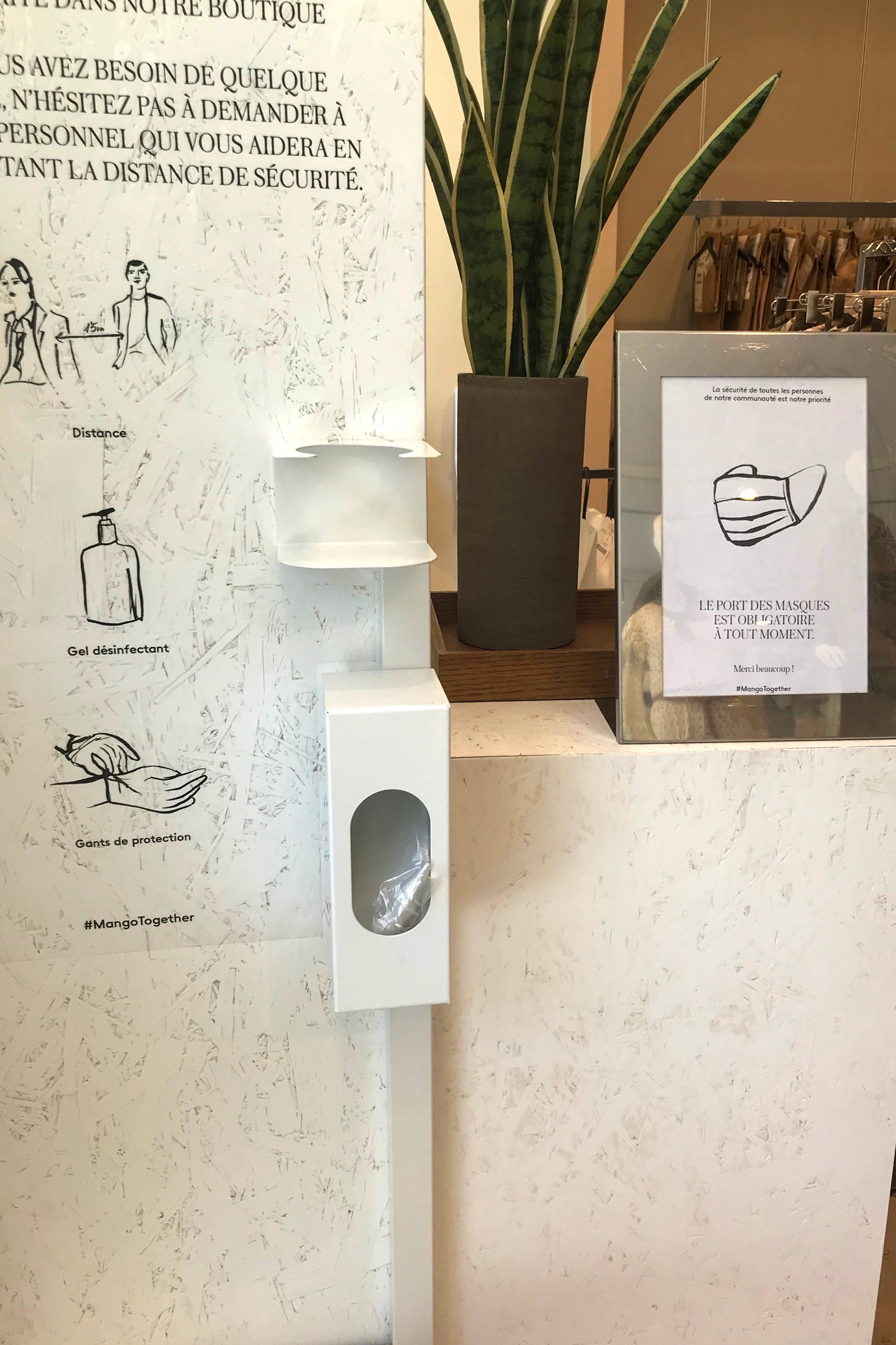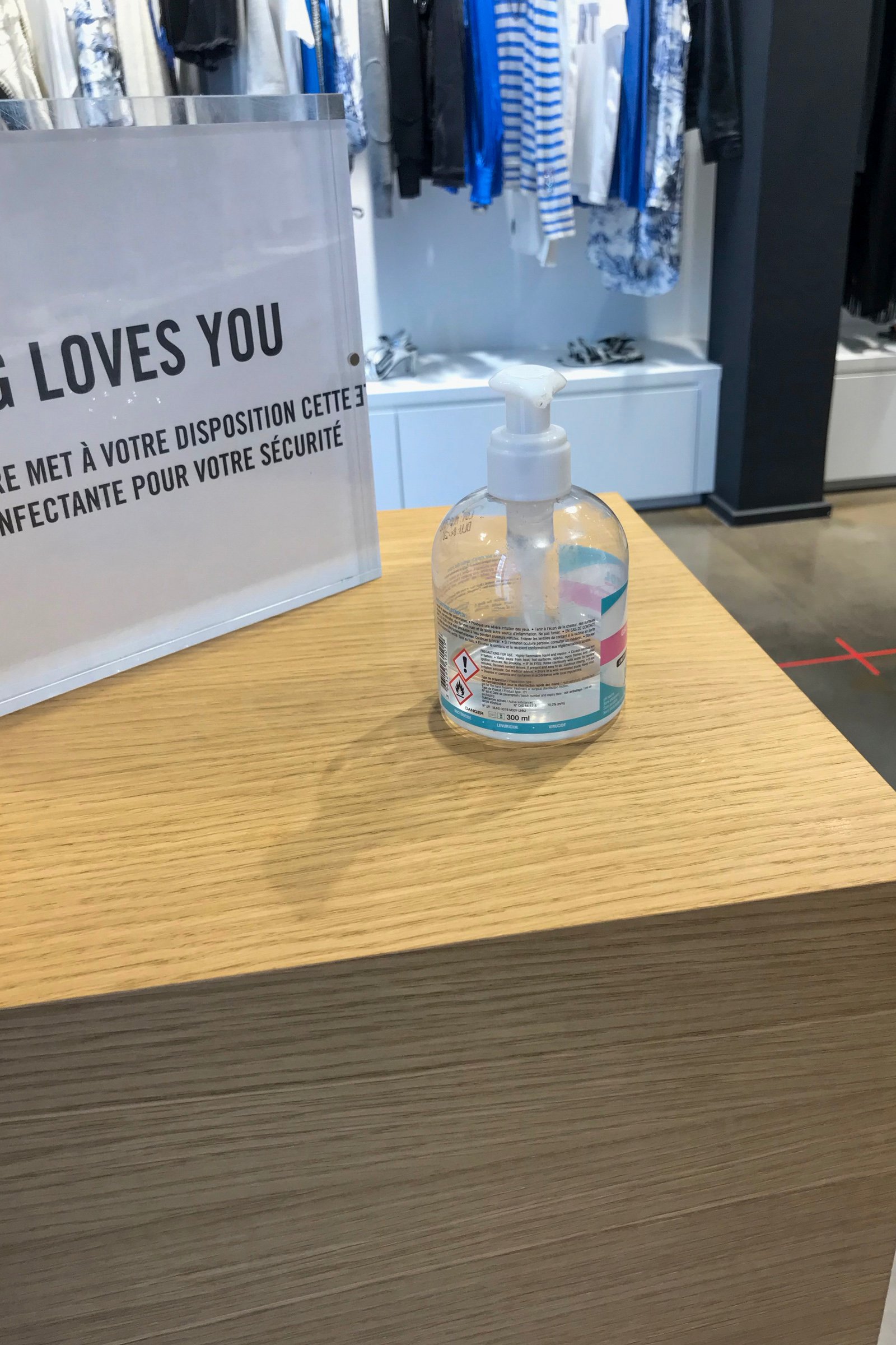 H&Mのエントランス。デパート同様にセキュリティと消毒用ジェルがデフォルト。