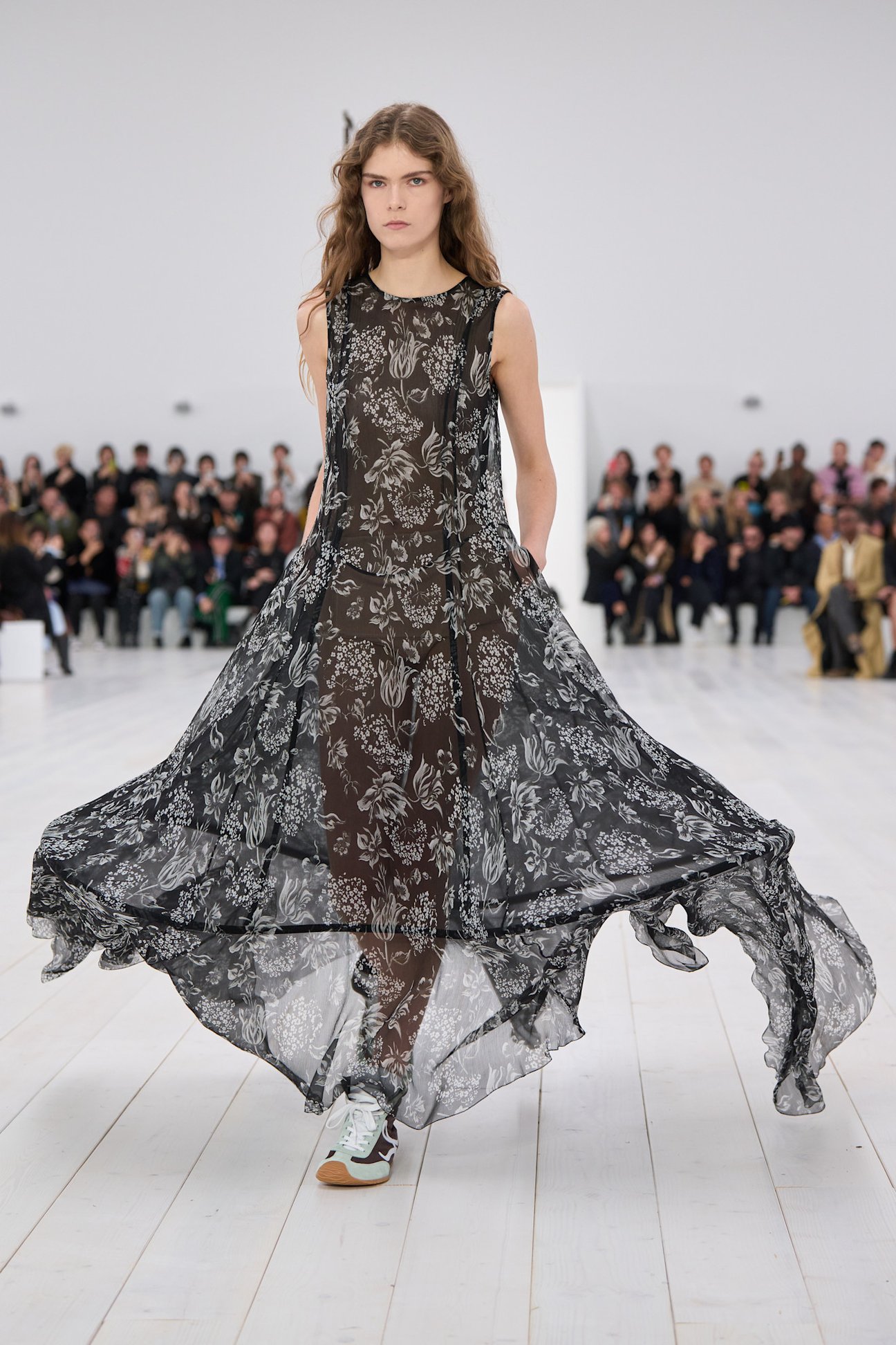 バルーンシルエットのトラウザーズや、ピンストライプのセットアップなど、ロエベらしいボリューム感で作られたウエアラブルなルックも負けじと印象的であり、ジャンルや時代を超えた巧みな編集力によって、ランウェイで他のルックとシームレスに融合している。今回のショーで、ジョナサン・アンダーソンによる「ロエベ」は10年の節目を迎えたが、その勢いは衰えるどころか、むしろショーを重ねるごとに凄みを増している。次なる10年は、どんなファッションの喜びをもたらしてくれるのだろうか、楽しみである。