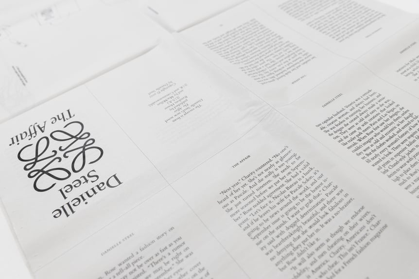 読み物としての完成度も高い。冊子の中にはアメリカ人ベストセラー作家ダニエル ・スティール(Danielle Steel)による新小説「The Affair(情事)」の第一章を収録。ファッション界の最有力誌の一つ〈モード・マガジン〉に25年間在籍し続ける伝説的な編集長ローズ・マッカーシーという架空の人物が主人公のフィクションノベルで、ストーリーもさることながら、組み立て式のミニ冊子は付録感覚で楽しむことができる。