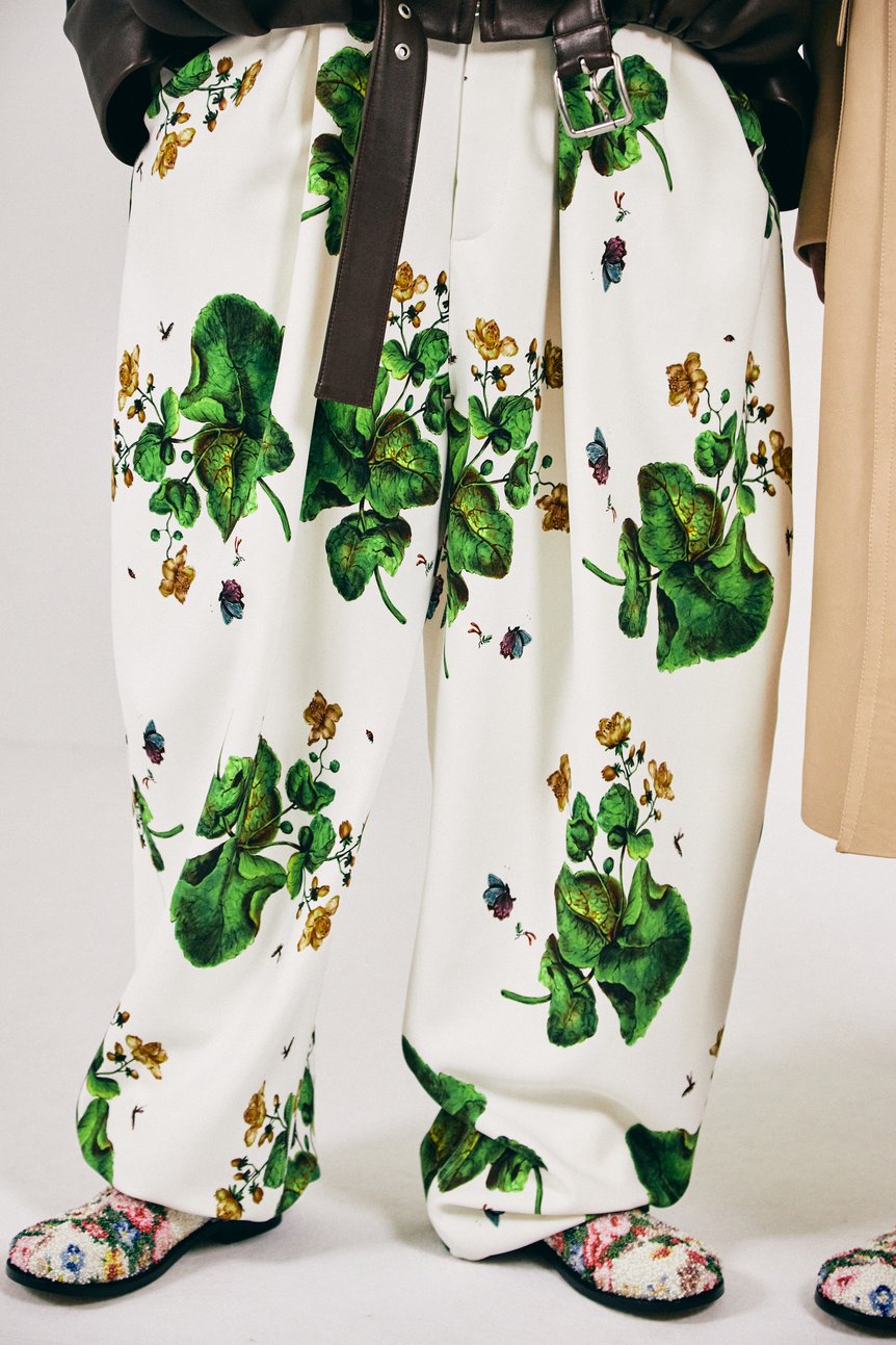 壁紙のようなフローラルパターンやアスパラガスなどのモチーフは、1700年代半ばにロンドンにあった「チェルシー磁器工房」を参照したものだ。「チェルシー磁器工房」は高値のコレクターズ・アイテムでありながら、そのデザインの多くをフランスの品々からコピーしたことでも知られている。ジョナサンは「コピーのコピーのコピー」と説明したが、つまり今回「ロエベ」がコピーしたものも何かのコピーであるわけだ。しかし実際の品々は、異なるアプローチと文脈の中にそれぞれ魅力的に存在している。