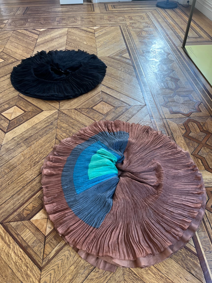 会場となったのは、18世紀に建てられたオテル・ド・メゾン。豪奢な内装を活用し、17のテーマで構成された部屋を来場者が巡る演出が施された。いずれの部屋にも、コレクションとともに、ジョナサン・アンダーソンがキュレーションしたアートピースも展示。過去のランウェイでも登場したアンセア・ハミルトン(Anthea Hamilton)や桑田拓郎の作品なども並び、回顧的な趣も感じさせた。