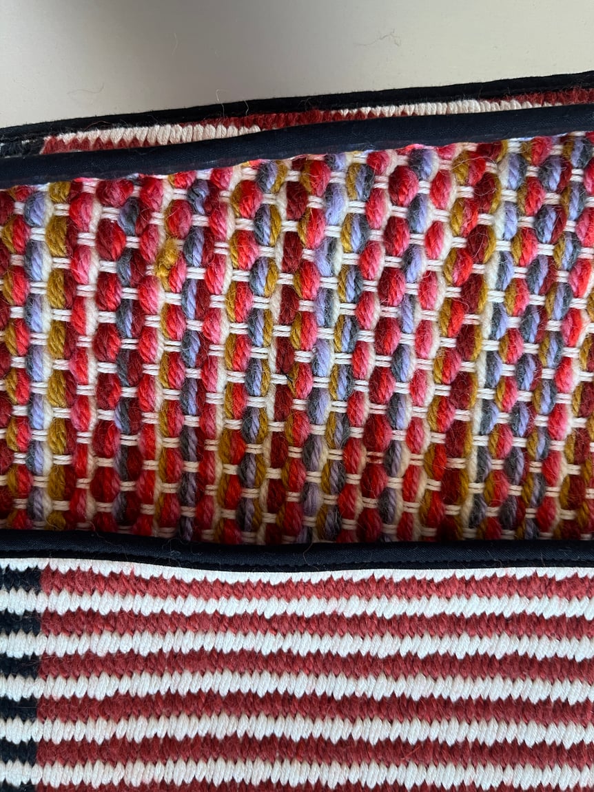 さらに、20世紀モダニズムの先駆的アーティストであるジョセフ・アルバース(Josef Albers)とアニ・アルバース(Anni Albers)夫妻とのコラボレーションも登場。ジョセフ・アルバースの「Homage to the Square」シリーズにある入れ子式に重なった正方形や色彩のブロックは、スカートやバッグに落とし込まれる。グラフィカルな織物で知られるアニ・アルバースの作品は、独創的なテクスチャーをもたらす。ジョセフ・アンド・アニ・アルバース財団の全面協力のもと、彼女のテキスタイルアーカイブを基に、ほぼ同様の生地を再現したそうだ。