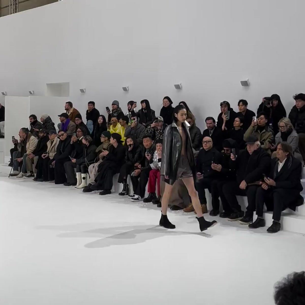 「削ぎ落とされた真っ白な空間で、ロエベのスタンスが直に伝わってきた」と話す森。「服の素材感やシルエット、目元の演出、音楽、どれもイカツめで置いていかれる感覚がするほど格好いい。そこに天井のでっかい窓からの自然光が差さって、やすらぎと安心感みたいな空気が漂いつつ、演出とのギャップから不穏さまで生まれていて完全に持っていかれた。こんなに素晴らしいものを間近で体験できるなんて、痺れましたね」
