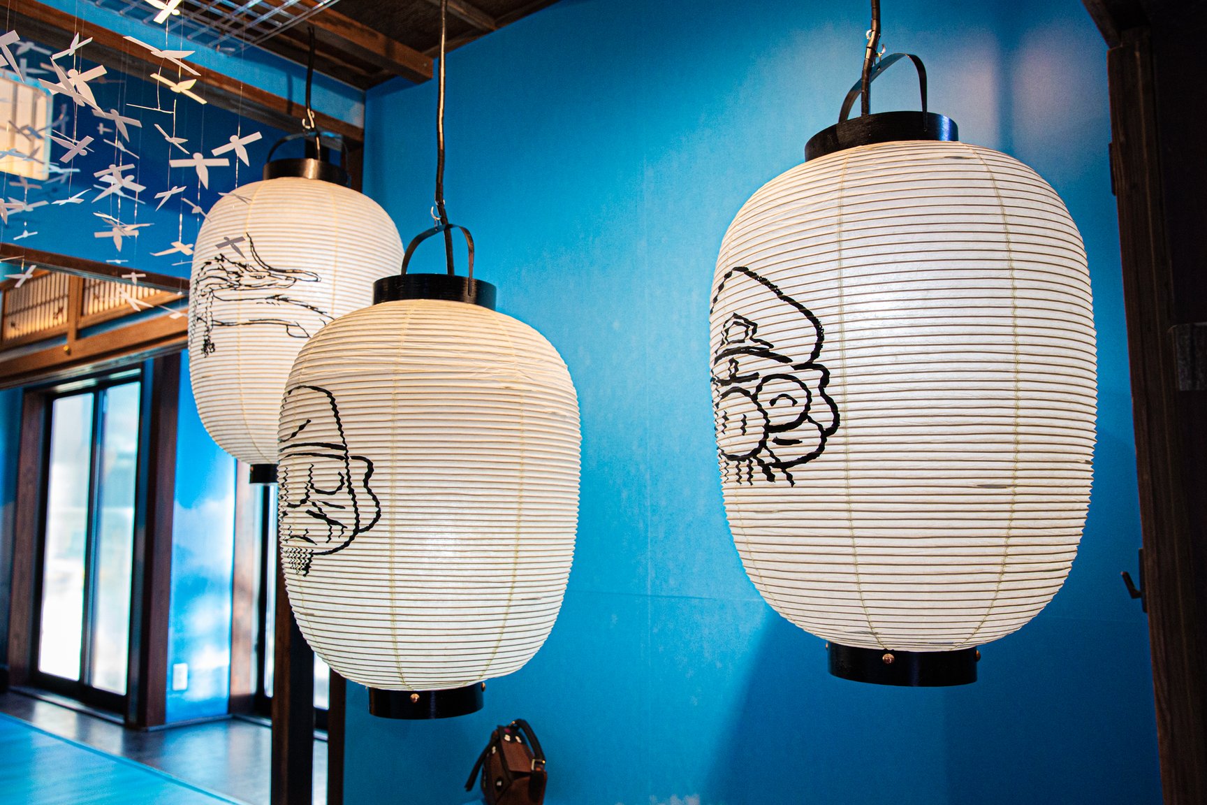 日が暮れると提灯の赤い光が古民家をぼんやりと照らし、昼間とは別世界に。時間によってサウンドも変わり、ファンタジックな世界観に浸ることができます。
