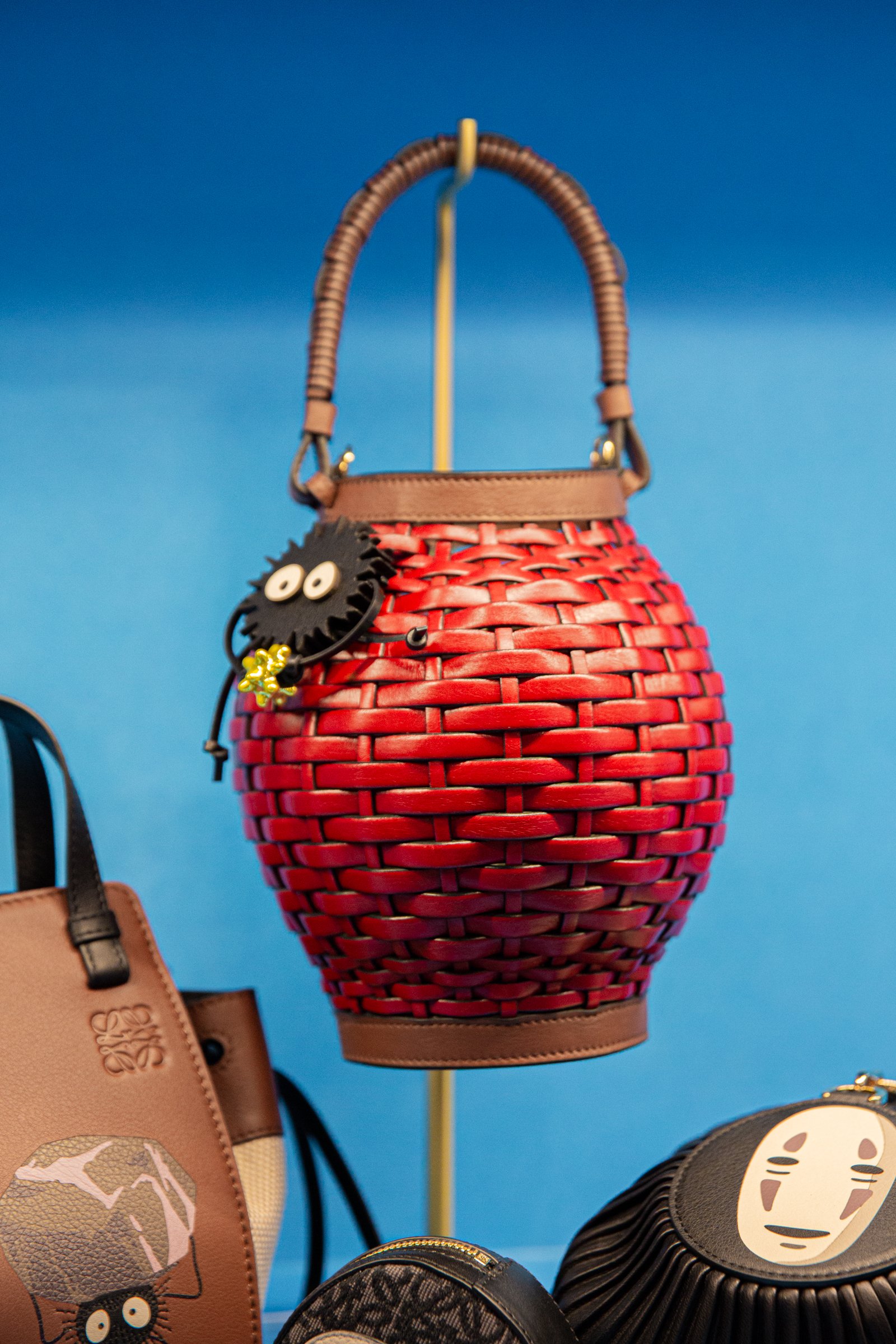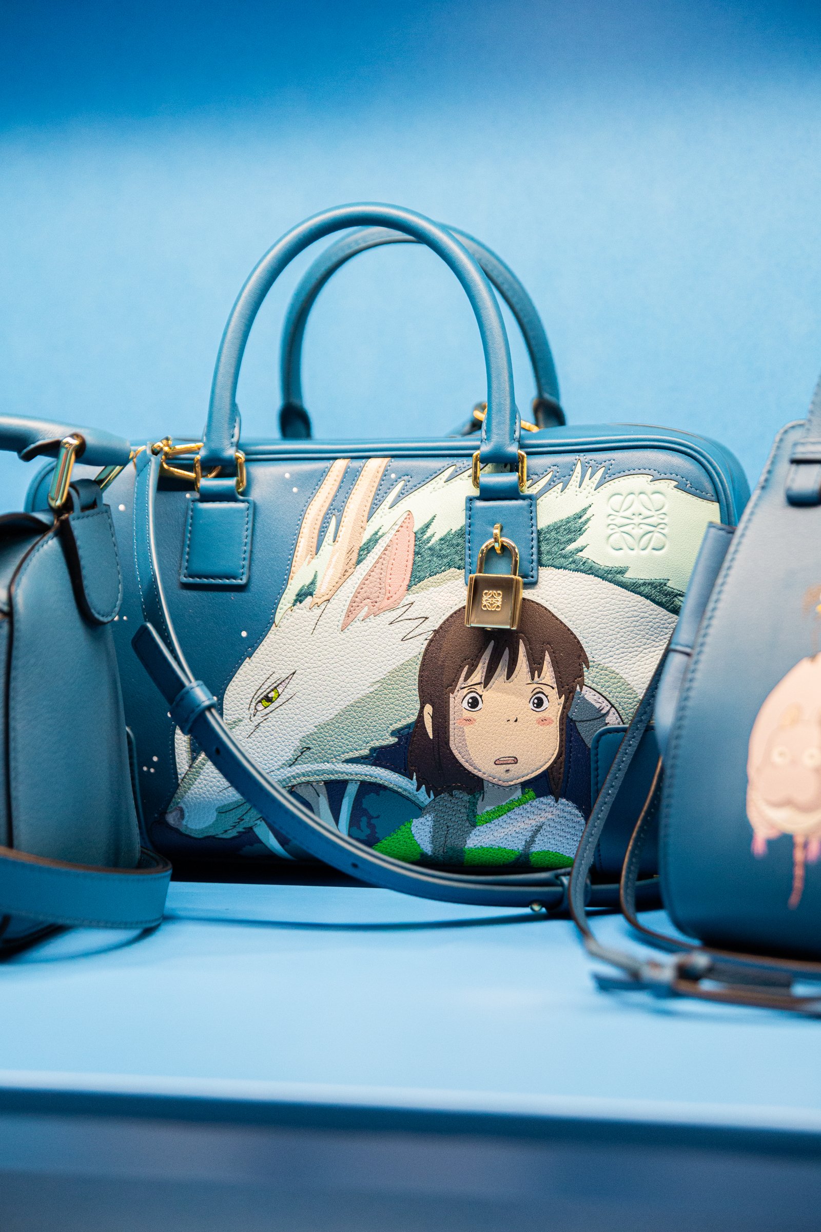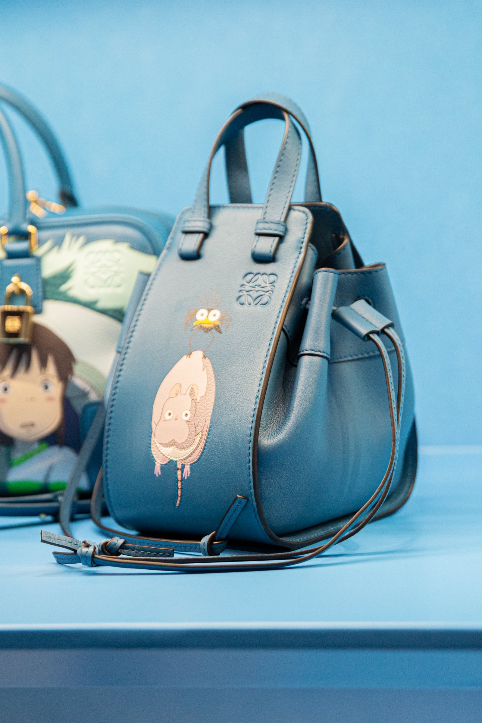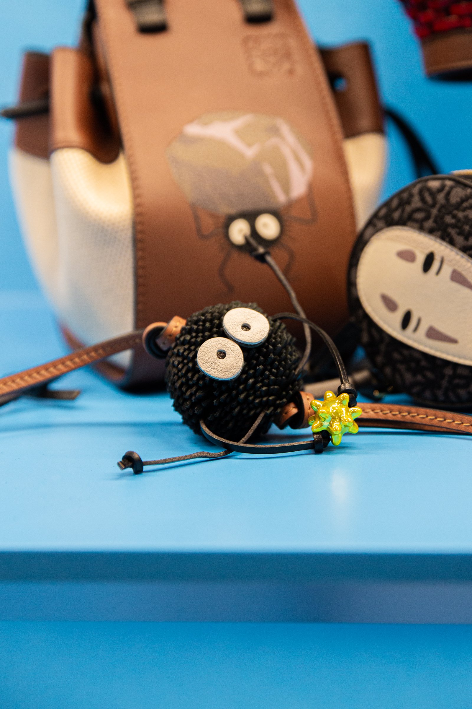 主人公の千尋をはじめ、少年ハク、湯屋を支配する湯婆婆、カオナシ、アオガエル、オオトリさま、坊ネズミ、ハエドリ、ススワタリ......「千と千尋の神隠し」に登場するキャラクターたちがロエベのクラフト技術と出会い、命が吹き込まれました。実際に手に取れば、その繊細さと創造性を見ることができます。