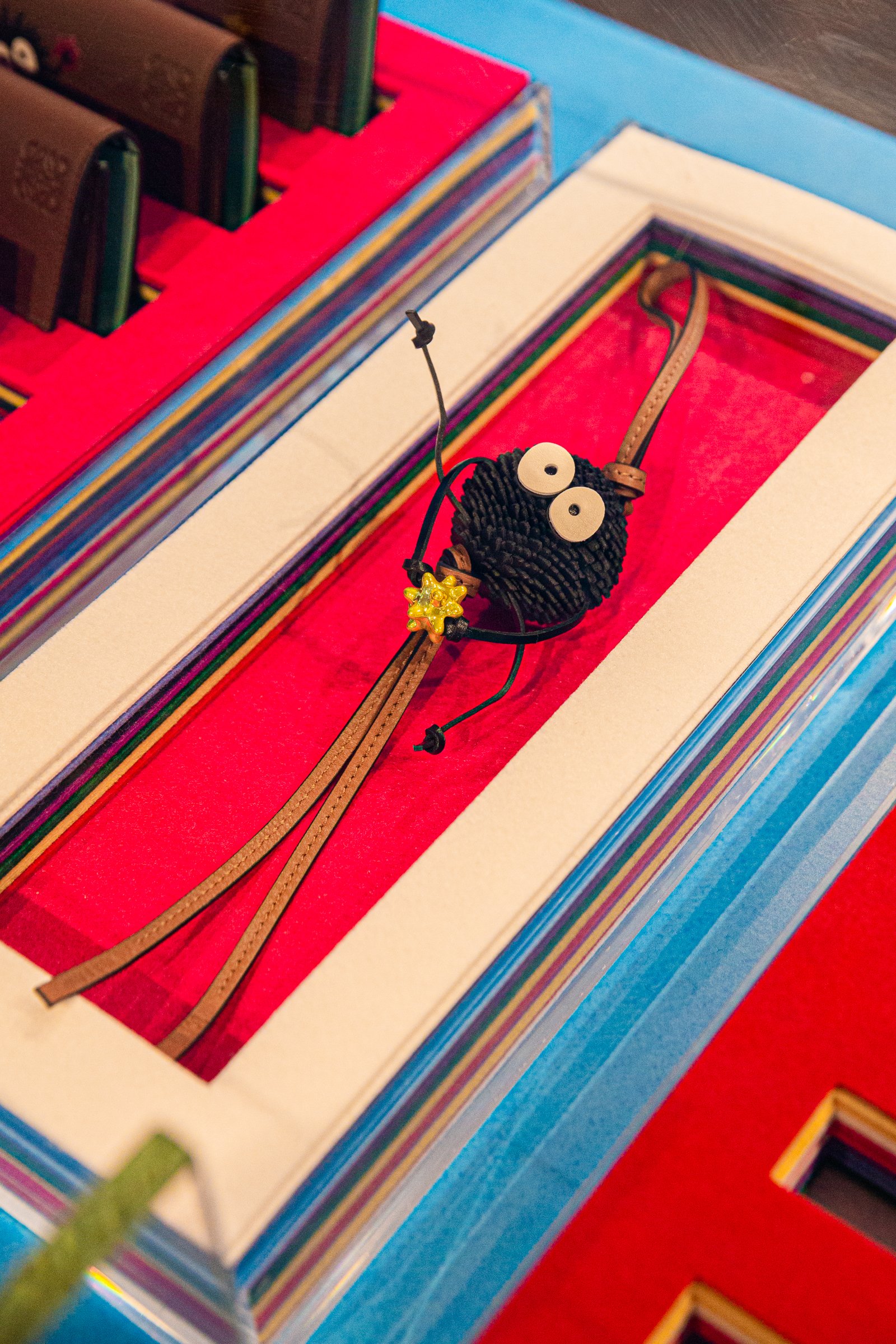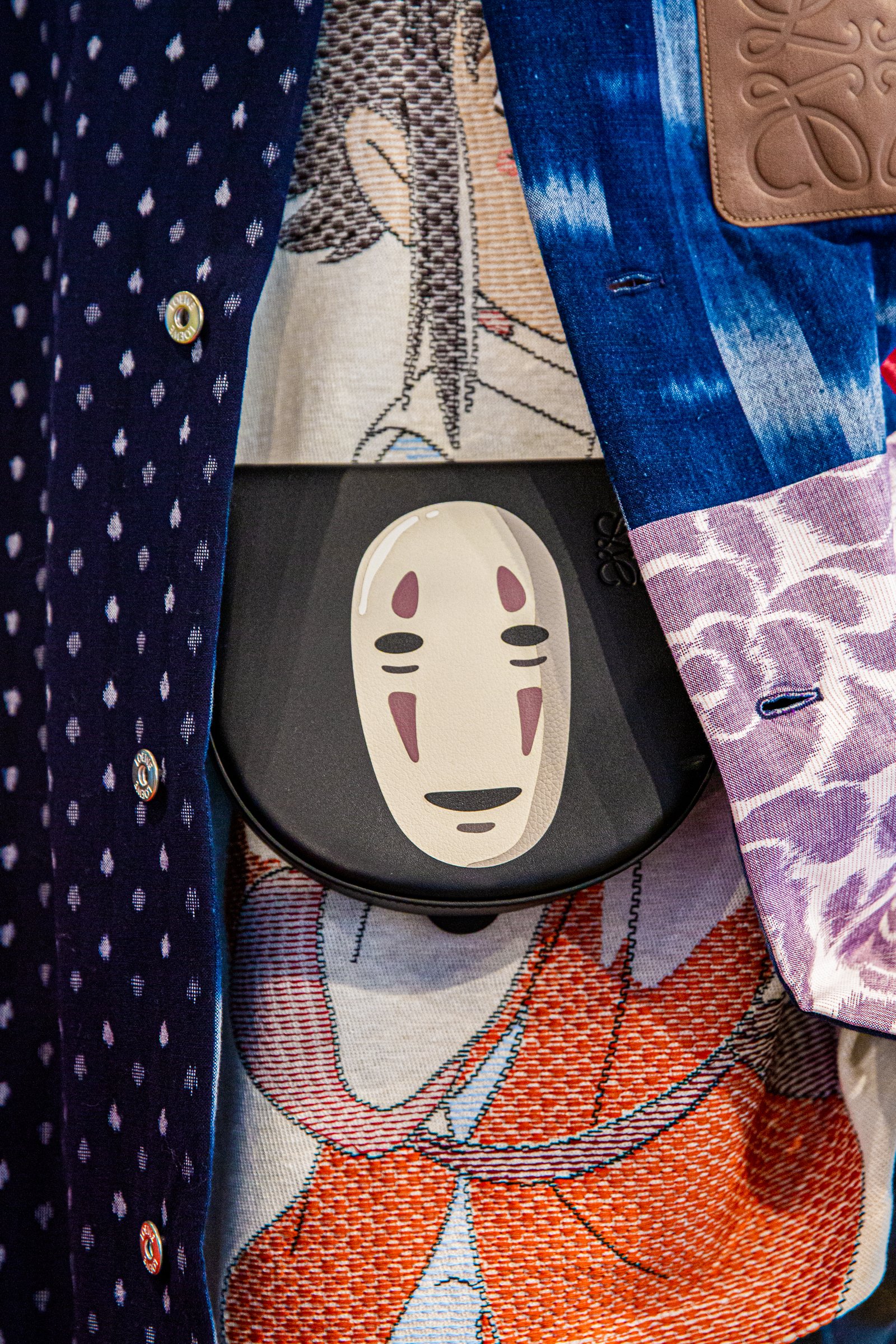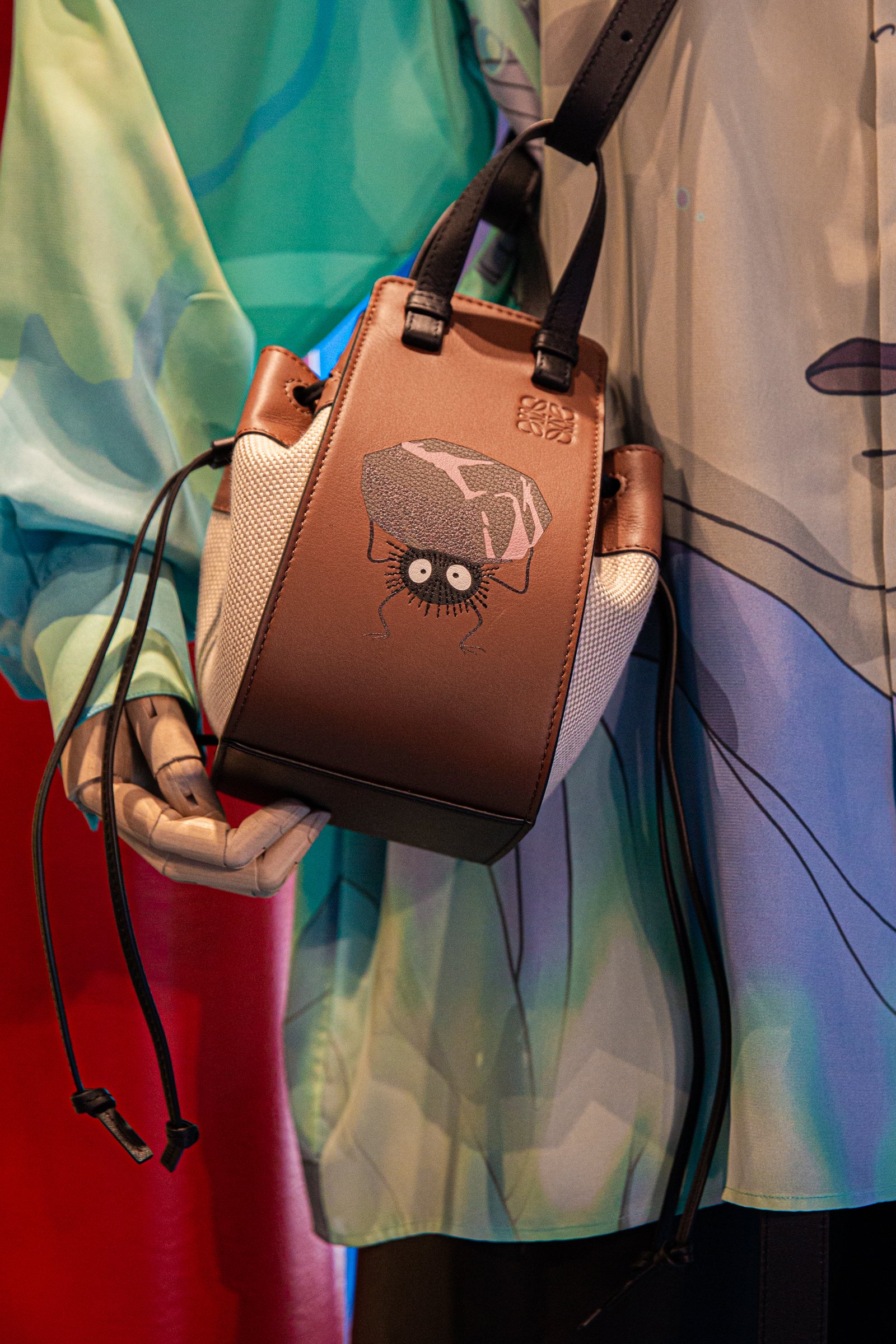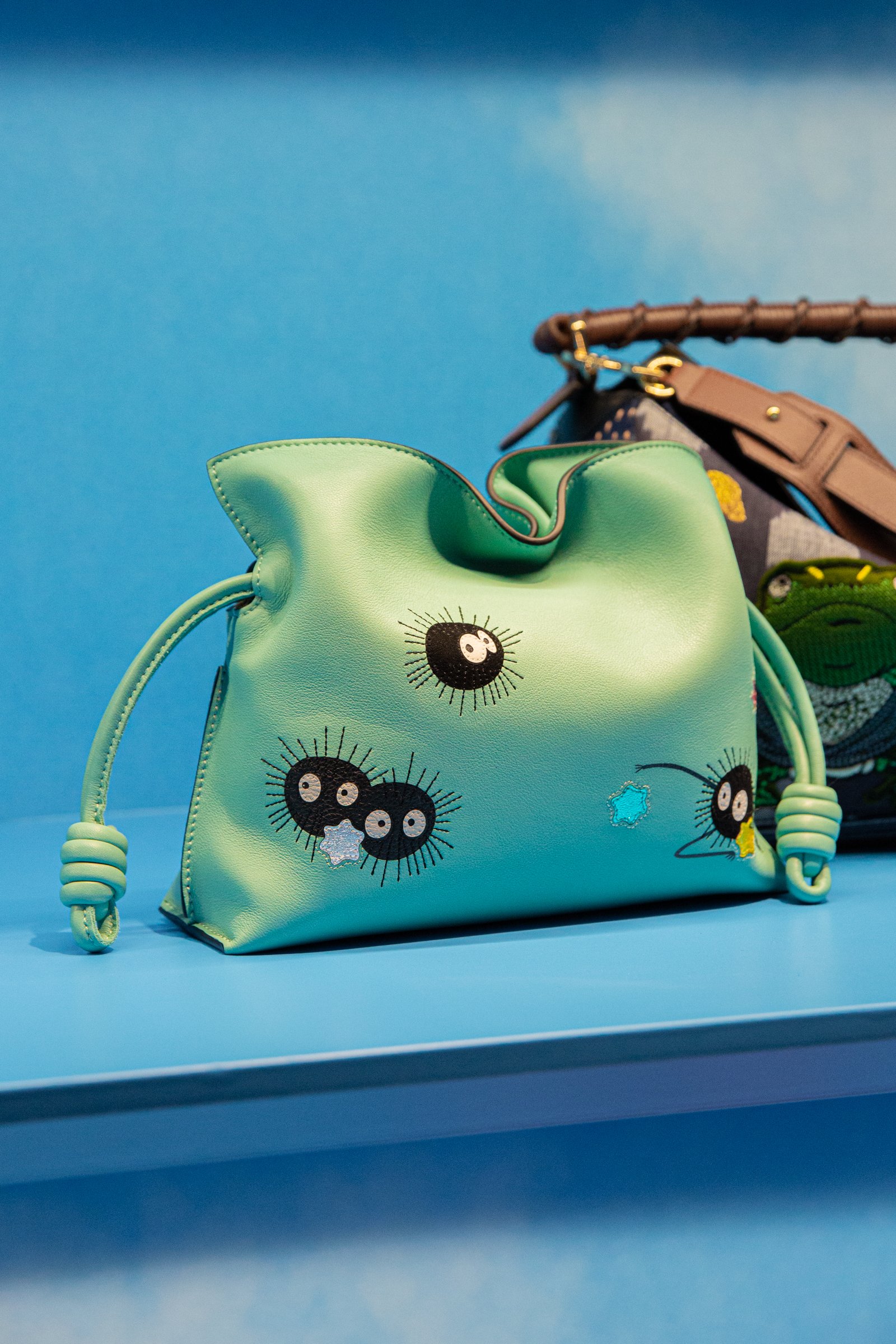 主人公の千尋をはじめ、少年ハク、湯屋を支配する湯婆婆、カオナシ、アオガエル、オオトリさま、坊ネズミ、ハエドリ、ススワタリ......「千と千尋の神隠し」に登場するキャラクターたちがロエベのクラフト技術と出会い、命が吹き込まれました。実際に手に取れば、その繊細さと創造性を見ることができます。