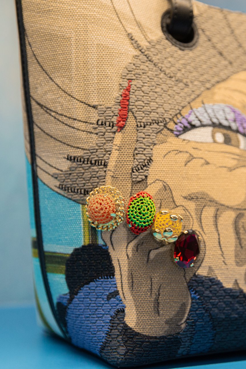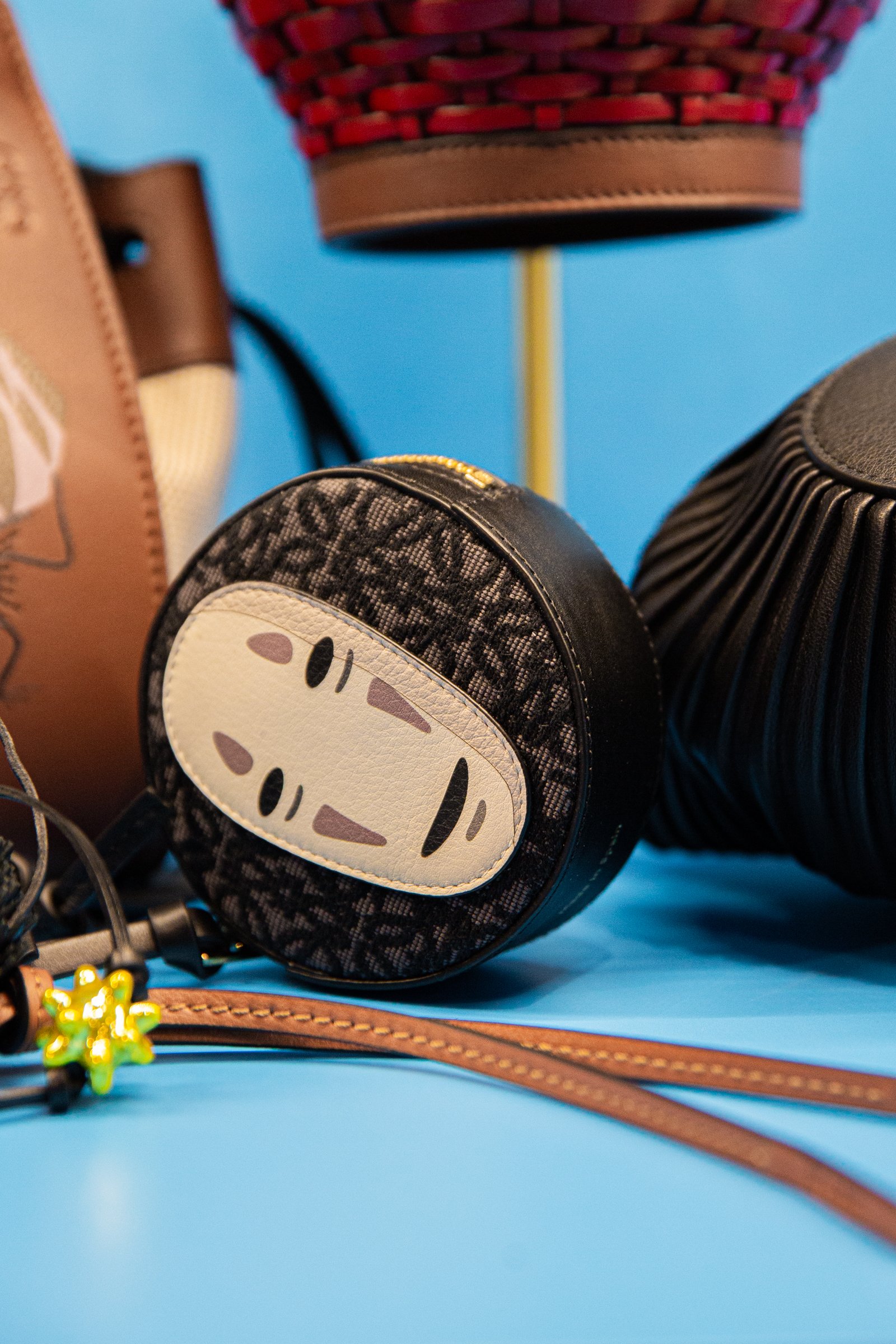 ステッチや刺繍、ジャカードなど、それぞれ異なる手触りと立体的なフォルムによって「クラフトを楽しんで欲しい」というジョナサンの思いを注入。姿を変えるカオナシが乗り移ったようなバッグや、ススワタリに好物の金平糖があしらわれていたりと、それぞれのキャラクターに沿ってアレンジされているのが特徴です。