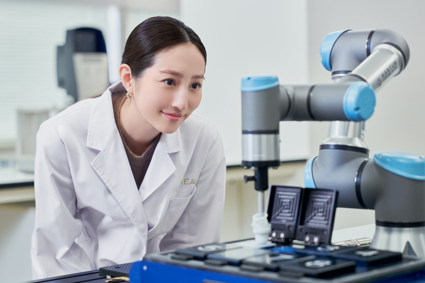 肌トラブルの主因となる紫外線は年々強さを増しており、美容のみならず肌の健康維持の観点からも、年齢・性別を問わず対策が推奨されています。こうした日やけ止めの開発には、SPF値の耐久性や、塗布してできた膜の均一性のチェックが欠かせません。そこで日本ロレアルでは、人の塗布動作を模倣したロボットを活用し、これらの厳密なテストを行っています。このロボットが収集するデータは、将来的にAIモデルと連携することで、さらに効果的な製品開発へとつながる可能性を秘めています。先端技術を応用したリサーチ方法に、堀田さんも日々のUV対策を振り返りながら、研究員の話に耳を傾けました。