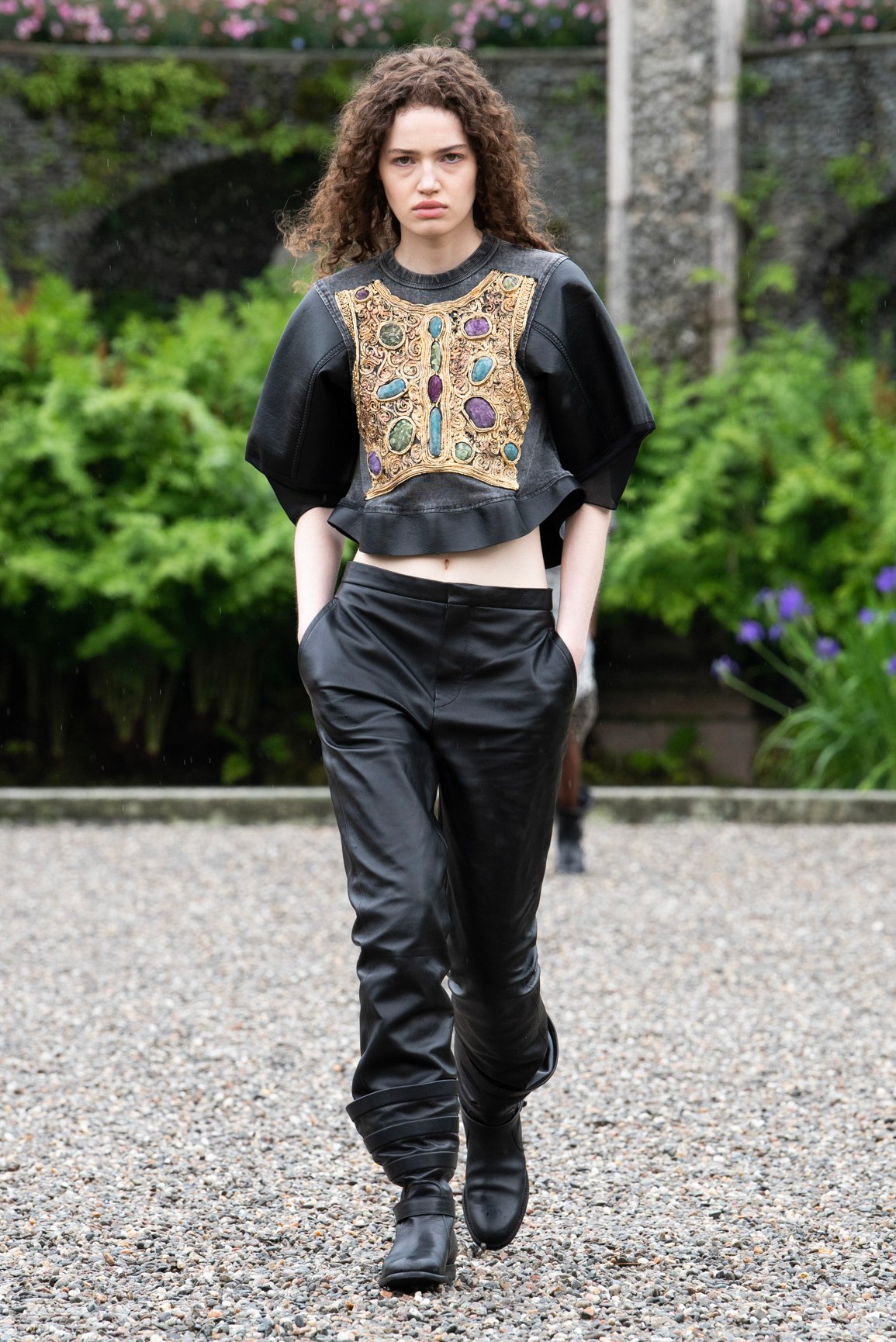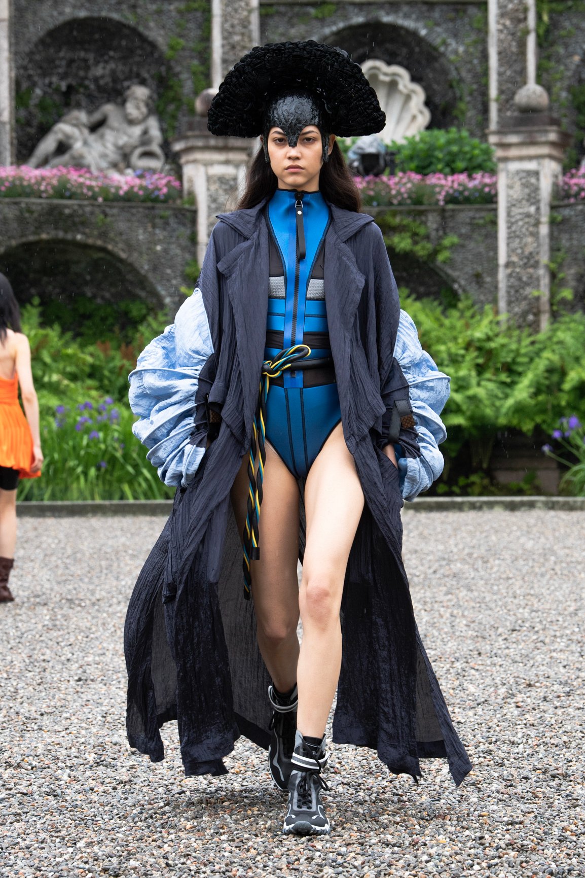 ルイ・ヴィトンの2024年クルーズコレクションは、そんなイゾラ・ベッラが持つ魅力と呼応。ジェスキエールは、ハイブリッドなエレガンスや逆説的な概念の中に、現代のフェミニニティとロマティックなものがもたらす、新たなバランスを探求したという。日常と非日常の間を行き来する幻想的なショーとなった。