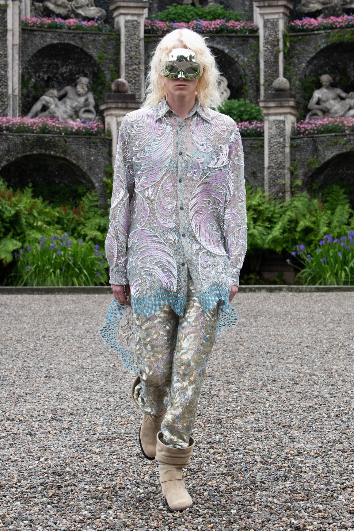 5月24日(日本時間5月25日)、約800人のゲストがルイ・ヴィトン特別仕様の船でベッラ島に上陸。天候の影響でランウェイの映像は庭園で撮影され、招待客向けのショーはボッロメオ宮殿で行われた。