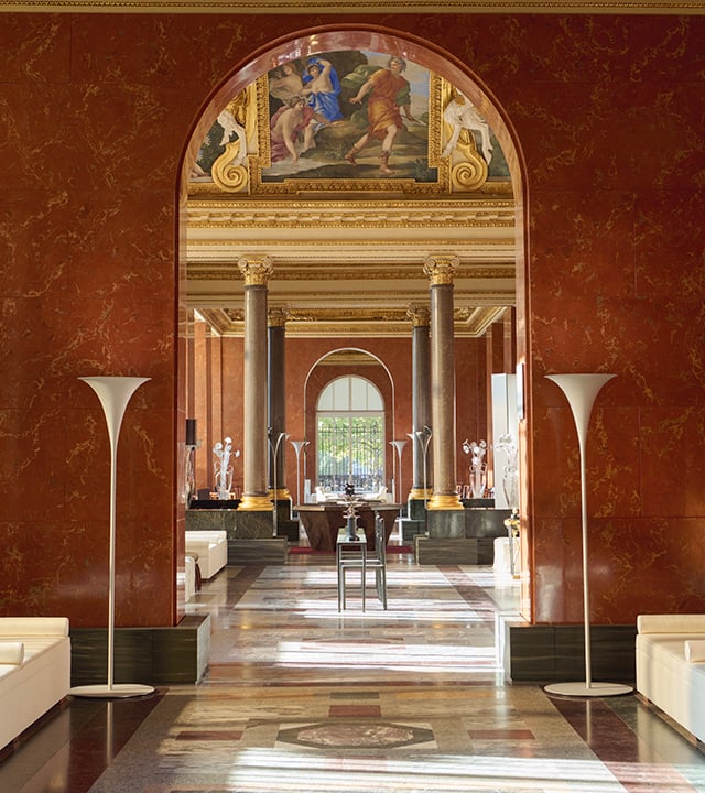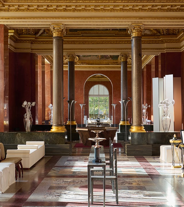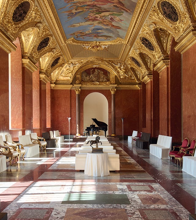 2026年春夏コレクションのショー会場は、まさにウィメンズ アーティスティック・ディレクターのニコラ・ジェスキエール(Nicolas Ghesquiere)が考える"暮らしの美学"を体現する場所となった。「ルーヴル美術館」のドゥノン翼の東側1階に位置し、フランス王ルイ13世の王妃でルイ14世の母であるアンヌ・ドートリッシュが夏のアパルトマンとして居住していた「Appartements d'été d'Anne d'Autriche」。この歴史ある壮麗な部屋が連なる空間に、舞台美術家でありデザイナーでもあるマリー=アンヌ・デルヴィルが、18世紀の家具職人ジョルジュ・ジャコブの家具や1930年代のミシェル・デュフェが手掛けたアールデコ調の椅子、19世紀の陶芸家ピエール=アドリアン・ダルペラによる彫刻など、さまざまな時代の家具や作品を配置。モダンなアパルトマンを再現した。