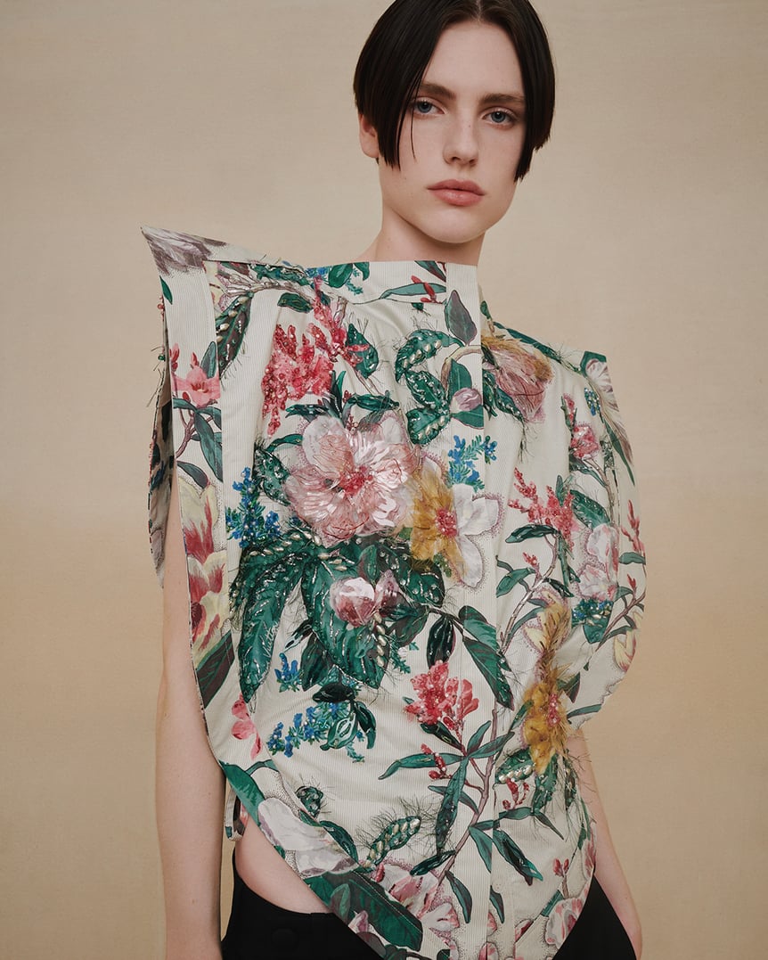 自身のアパルトマンを巡る旅は、ジャンルの原型を探求するものであり、その中で服は秘密を語り、視点を啓示し、そして個性を宣言するものです。それは、どこへ旅しても自分のあり方を守り続けるという基本的な信念に導かれた、数あるメゾンの旅のひとつです。——コレクションノートより