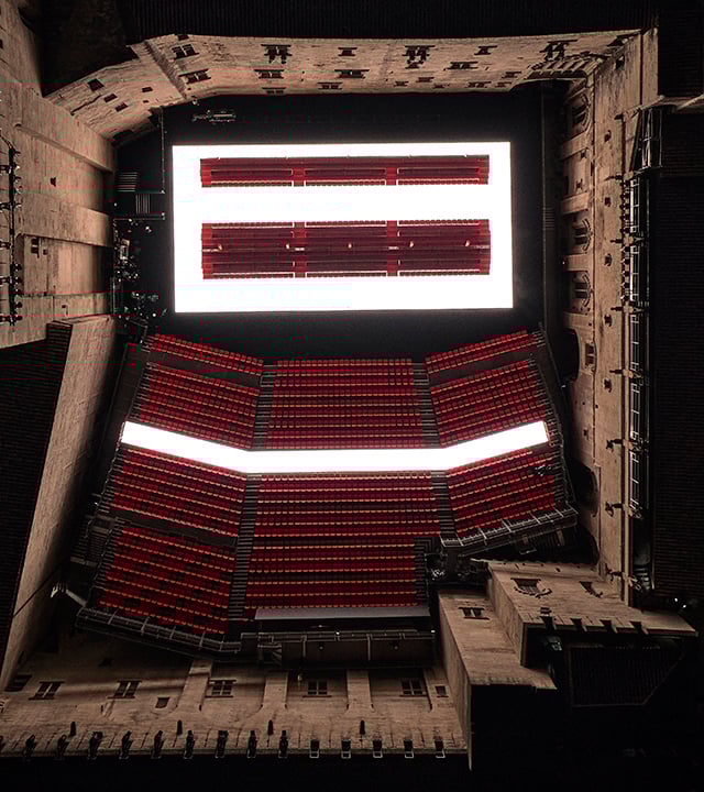 アヴィニョン教皇庁の中庭で光のランウェイ