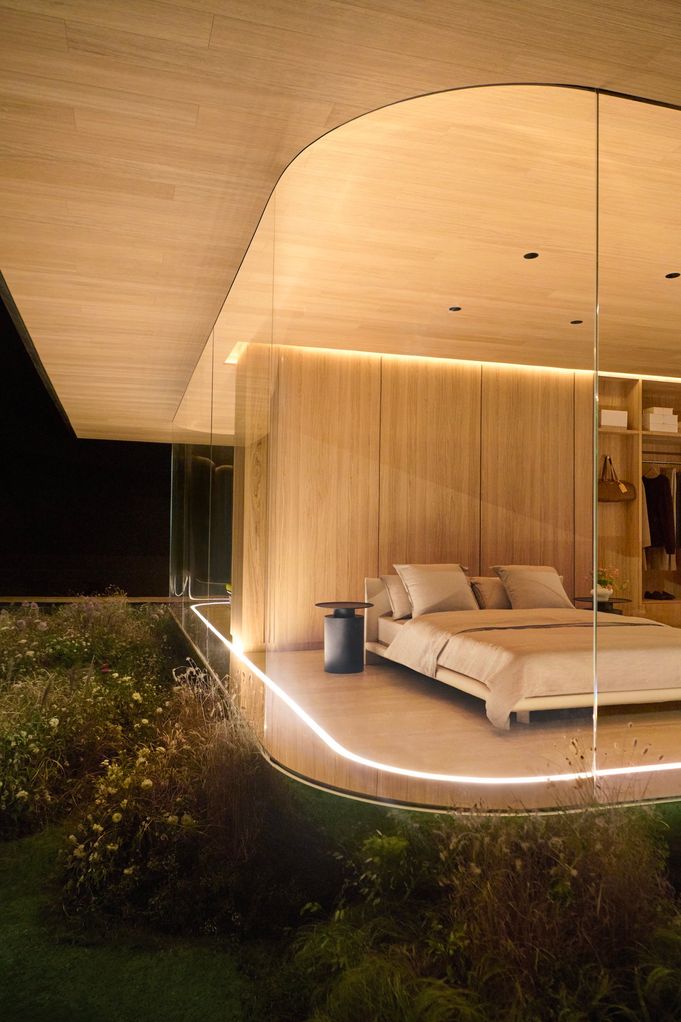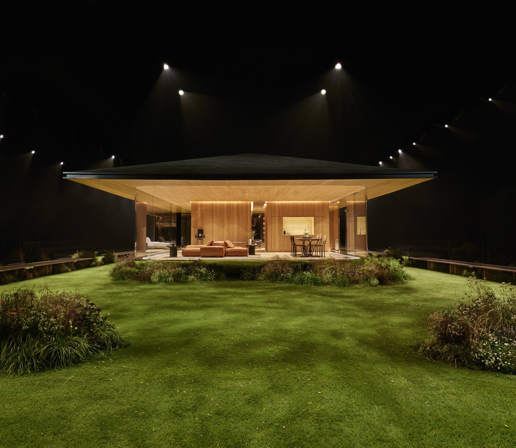 ファレル・ウィリアムス(Pharrell Williams)による「ルイ・ヴィトン(LOUIS VUITTON)」は、実用的なラグジュアリーというヴィジョンを提示する。ショーの舞台は、永続的な価値と快適な暮らしを享受する「家」。巨大な木製の貨物コンテナを模した特設会場の中に、ファレルがクリエイティブアドバイザーを務める「NOT A HOTEL」と共同でデザインしたプレハブ住宅「DROPHAUS」が建っていた。未来を構想するタイムレスな空間が、2026年秋冬メンズコレクションと呼応する。