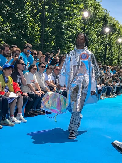 フィナーレに登場したモデルたちは、ゆっくりと歩きながら空を仰ぎ、まるで何かを探しているかのよう。続いてヴァージルの夢物語を実現してきたデザインチームのスタッフらが登場し、互いに抱き合う姿も。スタンディングオベーションとなったエンディングでは、夕陽のような暖かな光がパフォーマーから観客まで全てを包み込んだ。