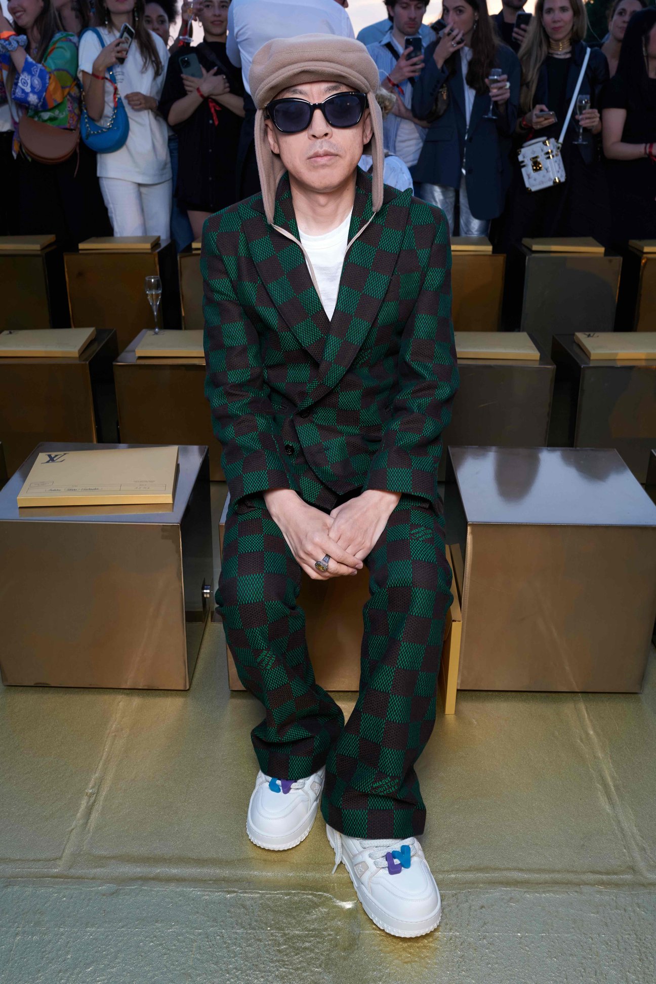 会場にはファレルと親交の深いNIGO®の姿も。ファレルが特別に仕立ててくれたというダミエ柄のスーツを身につけて牧瀬里穂とともに出席し、「人柄が出ていたというか、彼らしいショーでしたね。自分も頑張らなきゃと思いました」と盟友の活躍を讃えた。