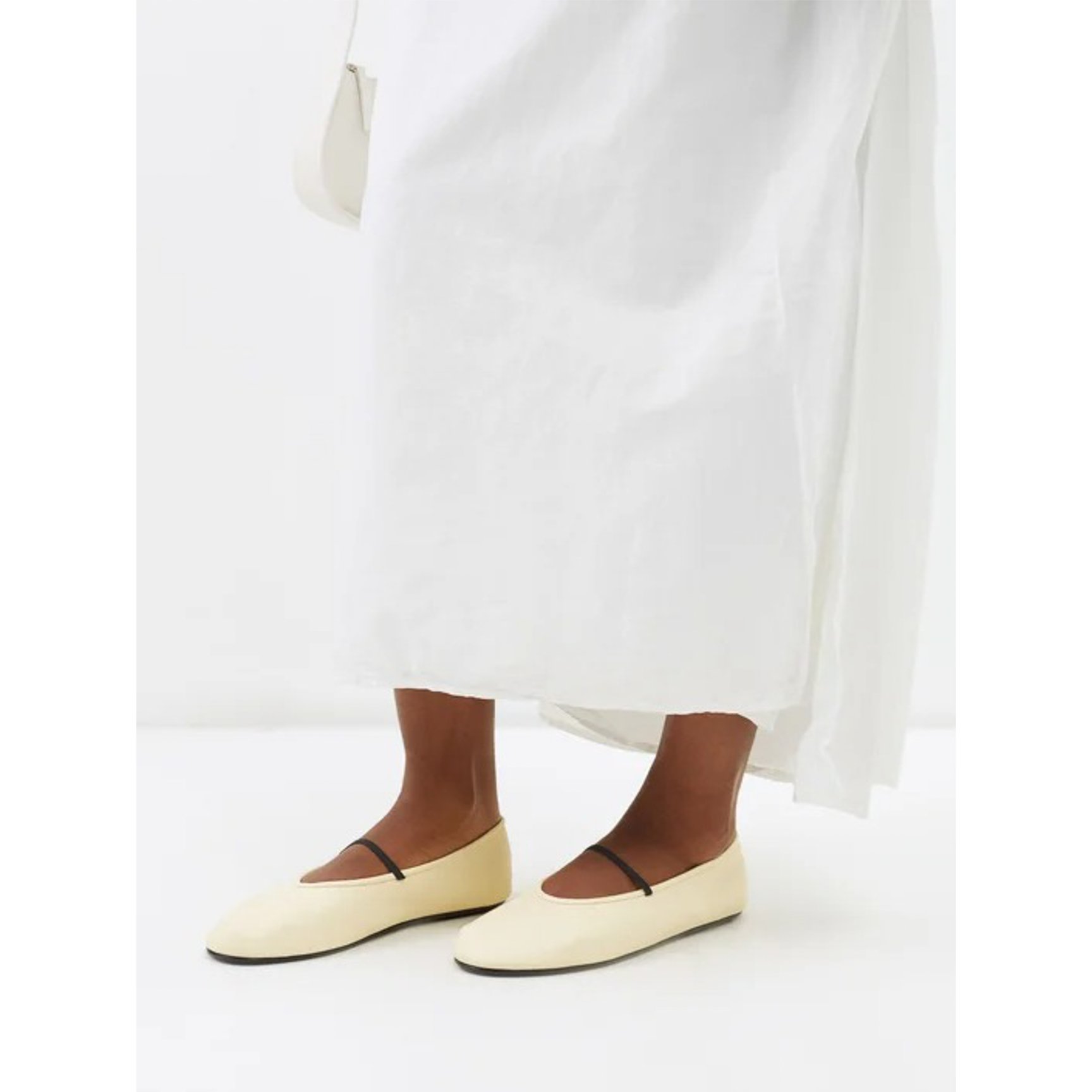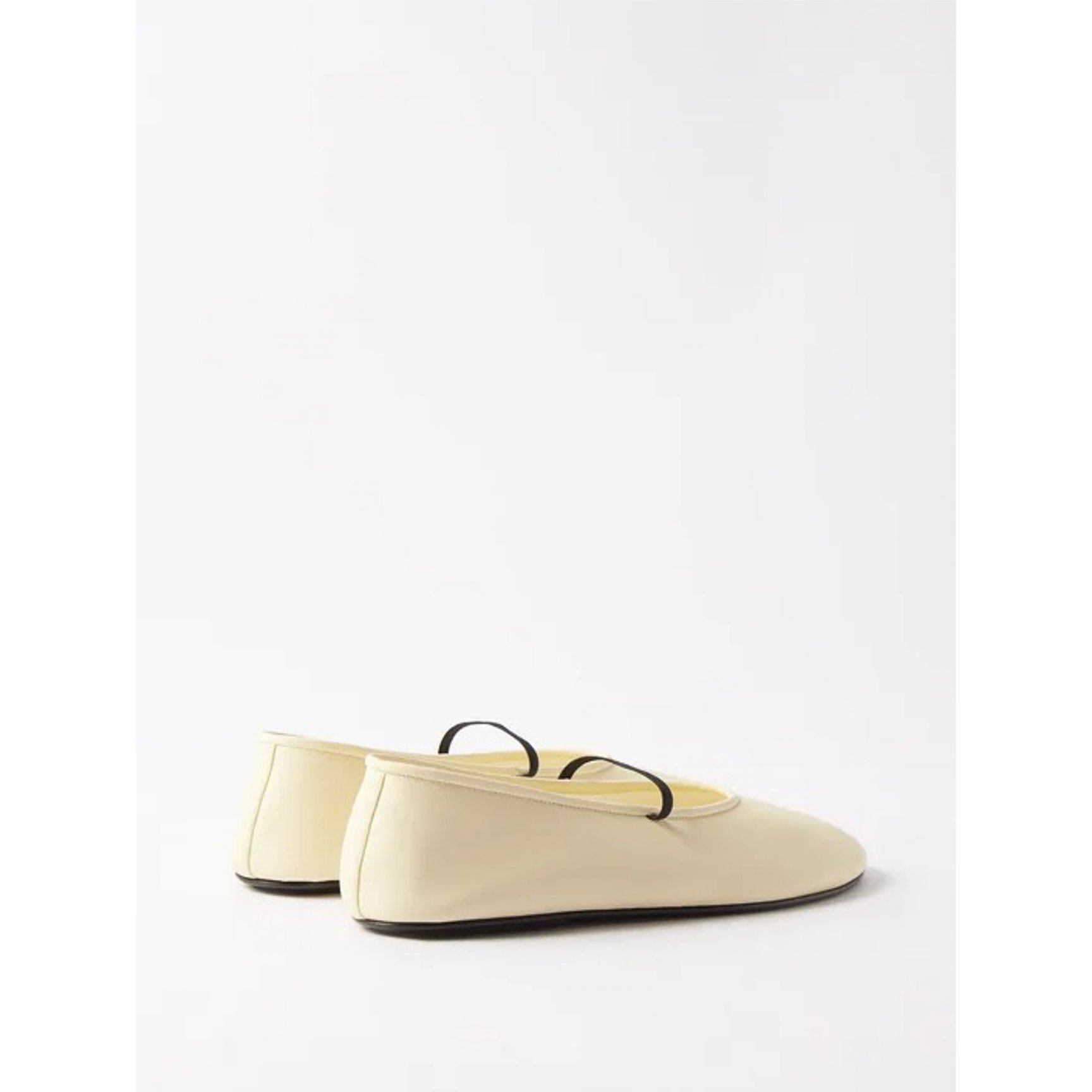 ミニマルなシルエットや、モノトーンの色合いなど洗練されたデザインが「ザ・ロウ(THE ROW)」らしいフラットシューズ。シンプルなデザインなので、ワンピースやパンツなどスタイルを選ばず汎用性の高い一足です。