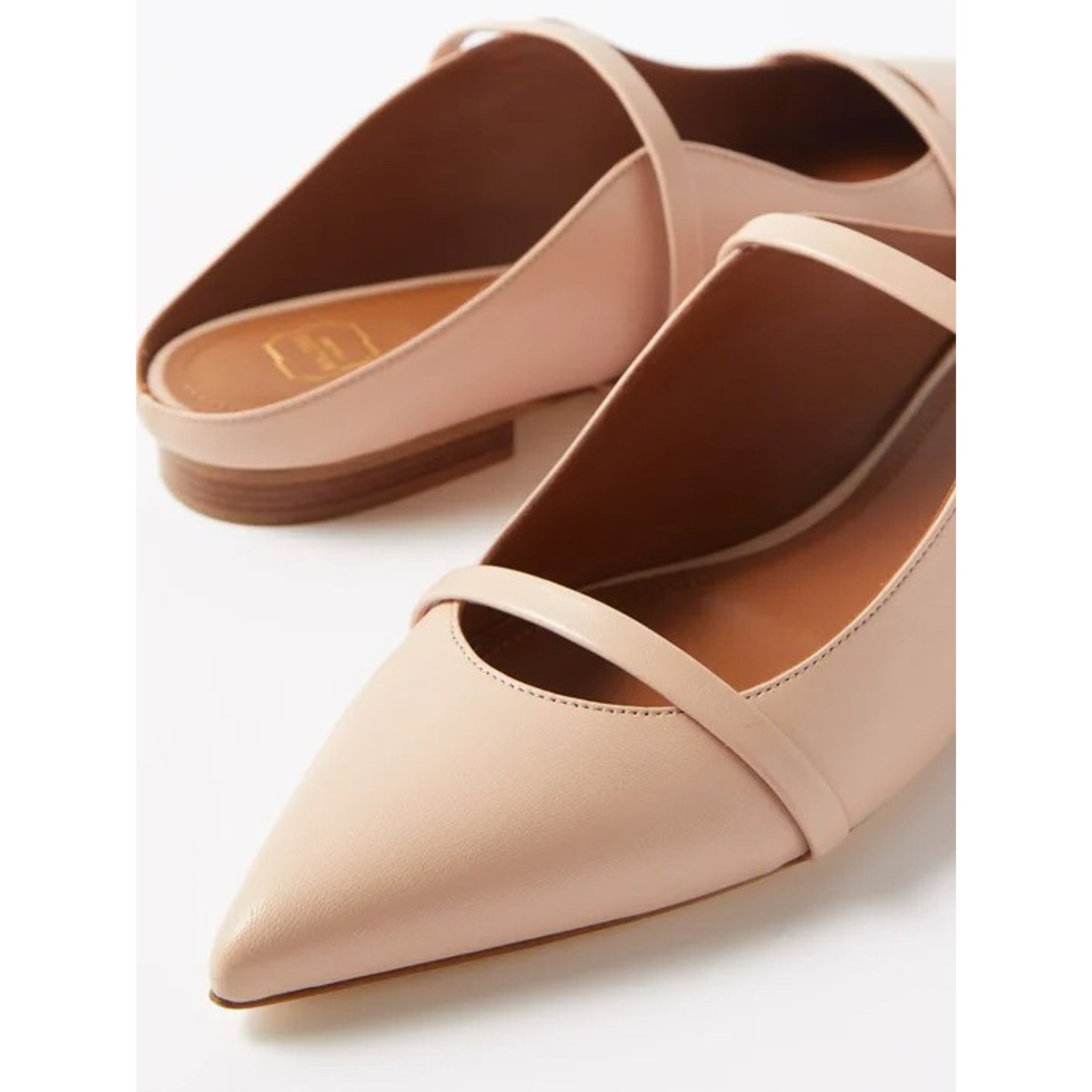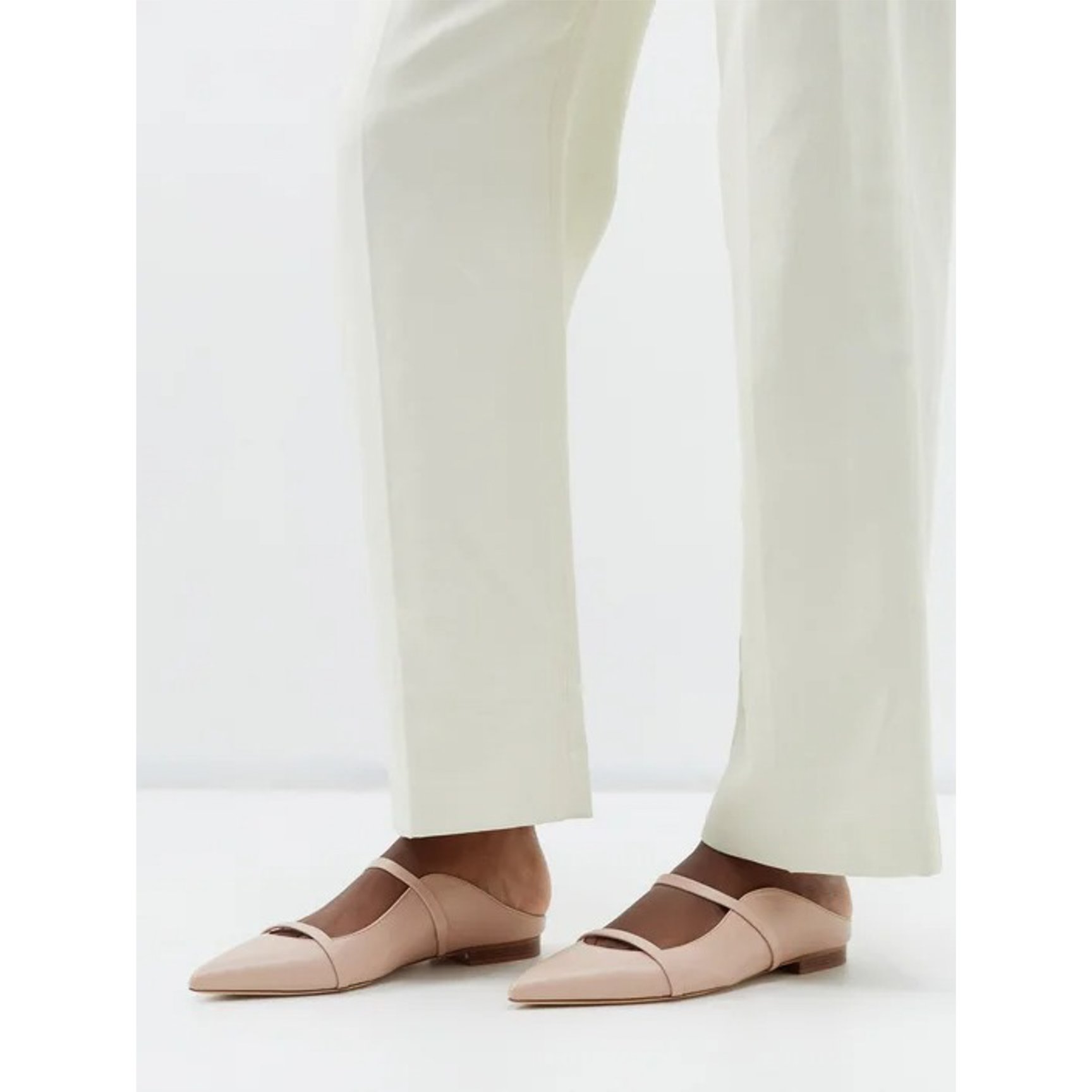 足の自然なアーチにインスピレーションを受けてデザインされた、カーブしたアッパーが他にはないデザインの「マローン・スリアーズ(Malone Souliers)」のフラットシューズ。独特の曲線が女性の足元を美しく見せてくれます。ダブルストラップなので安定感も抜群。