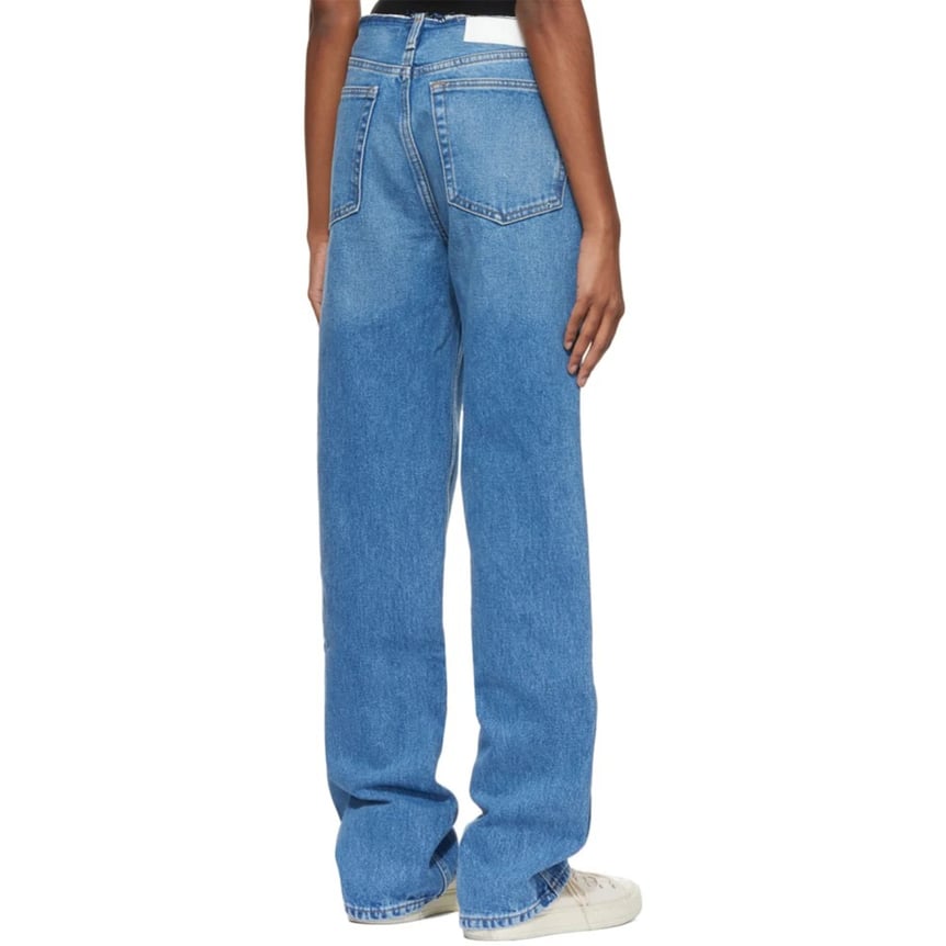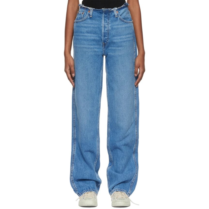 ウエストのカットオフが特徴的なデニムは「リダン(RE/DONE)」から。ウォッシュやほつれ加工を施し、5ポケットやボタンフライなどヴィンテージデニムを彷彿とさせるディティールを詰め込んだデザインが特徴です。