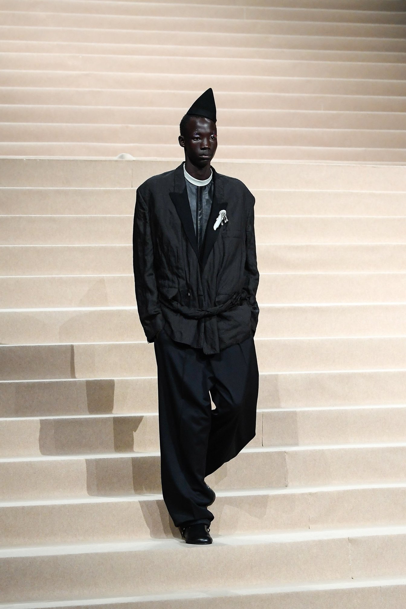 メンズブランドとしての見え方が強かったマリアーノだが、「女性にテーラーを着て欲しい」という同氏の言葉にあるように提案するのはユニセックスで、さらに今回はフェミニン要素の拡張に挑んだという。コンテンポラリーな身体という言葉は一見難解だが、恐らくは男らしさや女らしさという押し付けがましい固定観念の彼岸にある、二元論に収斂させないフラットなアイデンティティのこと。アンドレイ・タルコフスキー監督作品「ノスタルジア」からインスピレーションを得て、最も多様な個性を持つ人々が出会うことのできる、苦悩に満ちた雰囲気を創り出すために、モデルはゆっくりと歩き、階段を降りるという演出を取り入れたのにも、そうした背景があったからだろう。実際アイテムには、「ノスタルジア」の物語の鍵となる蝋燭のモチーフも採用された。