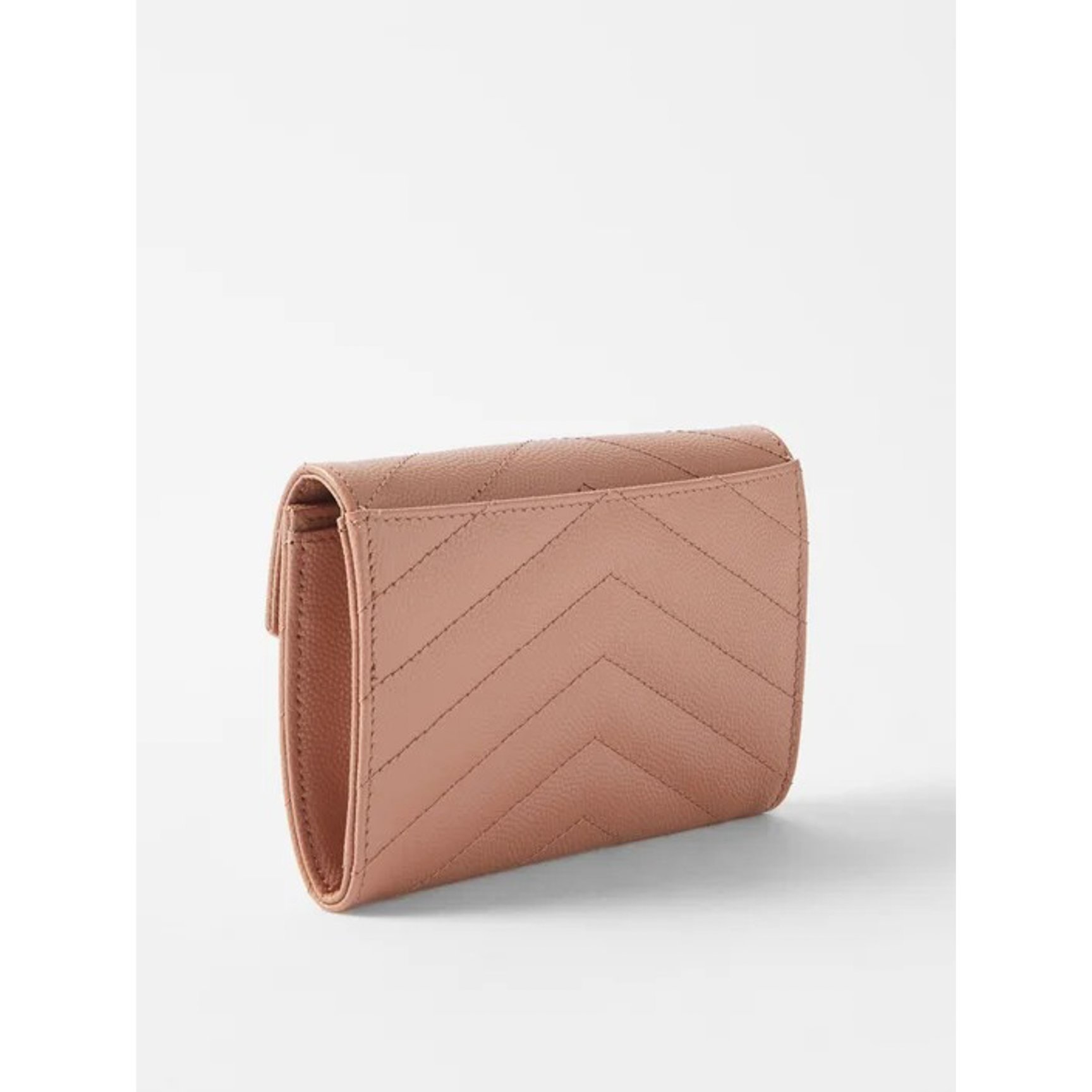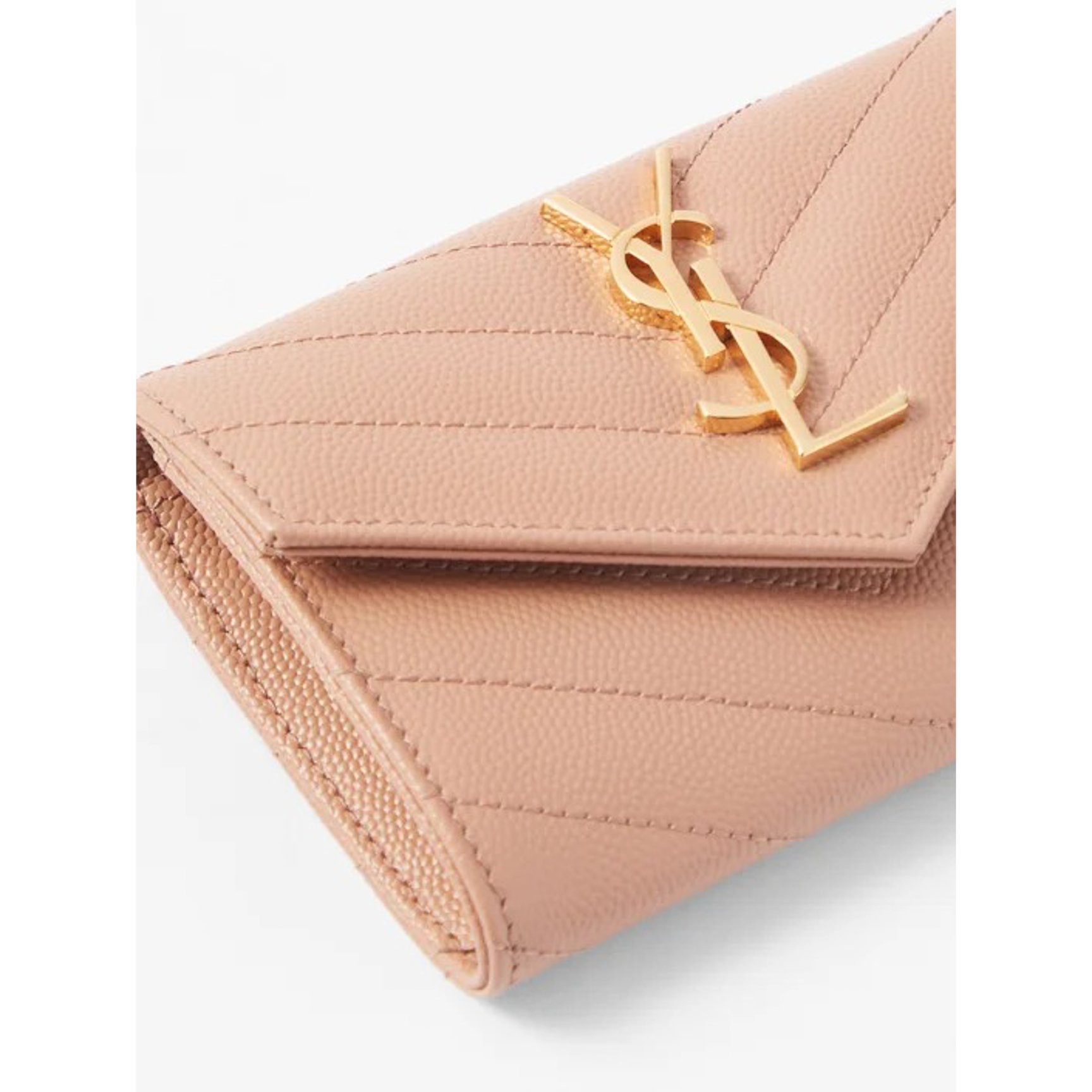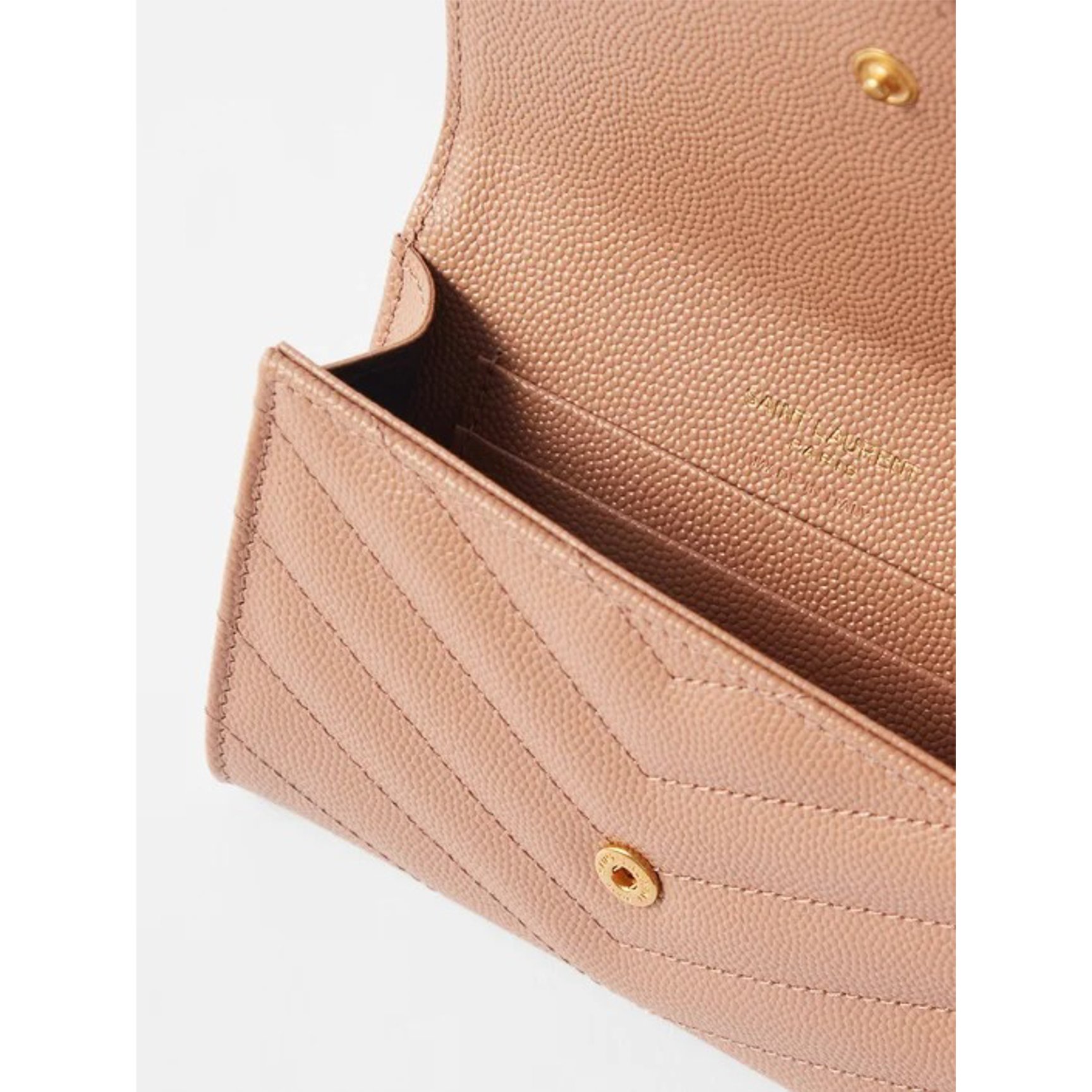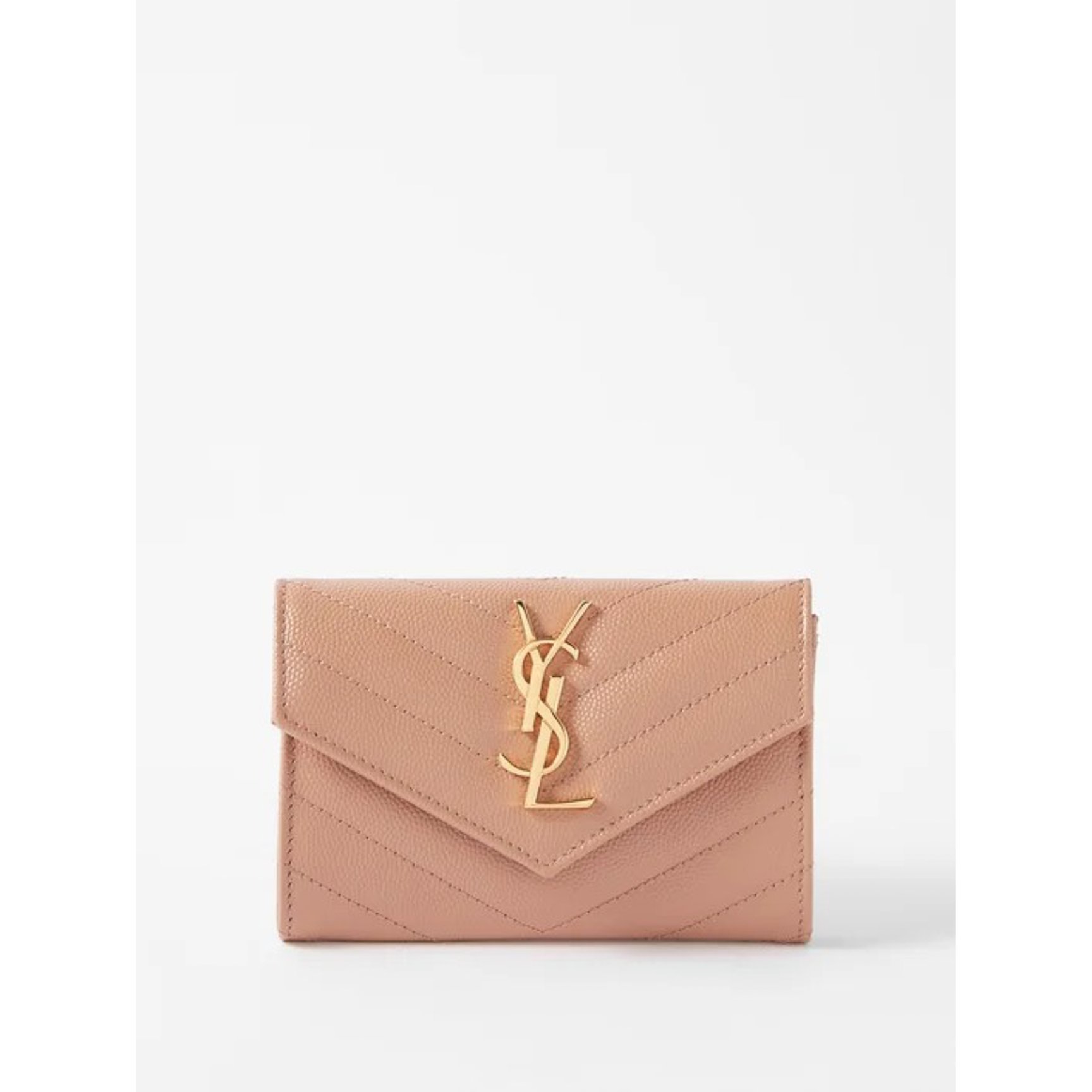 落ち着きのあるベージュの色合いに大人の女性らしさが漂うこちらは「サンローラン(SAINT LAURENT)」のもの。シンプルながら、キルティングレザーが豊かな表情を引き出しています。コンパクトな収納力で、キャッシュレスタイプの人には特におすすめ。