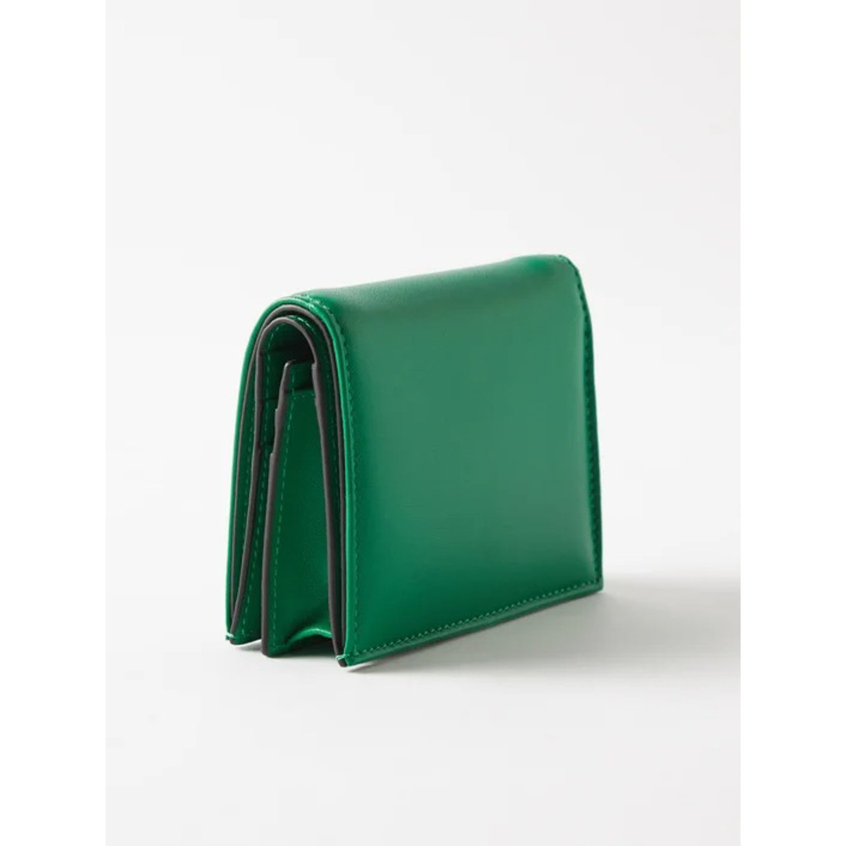 美発色のグリーンが目を引く「ヴァレンティノ ガラヴァーニ(VALENTINO GARAVANI)」。ゴールドのローマンスタッズがアクセント。ミニマルですが、カードスロット5つ、紙幣用コンパートメント1つ、コインケースと現代に最適な収納力を備えています