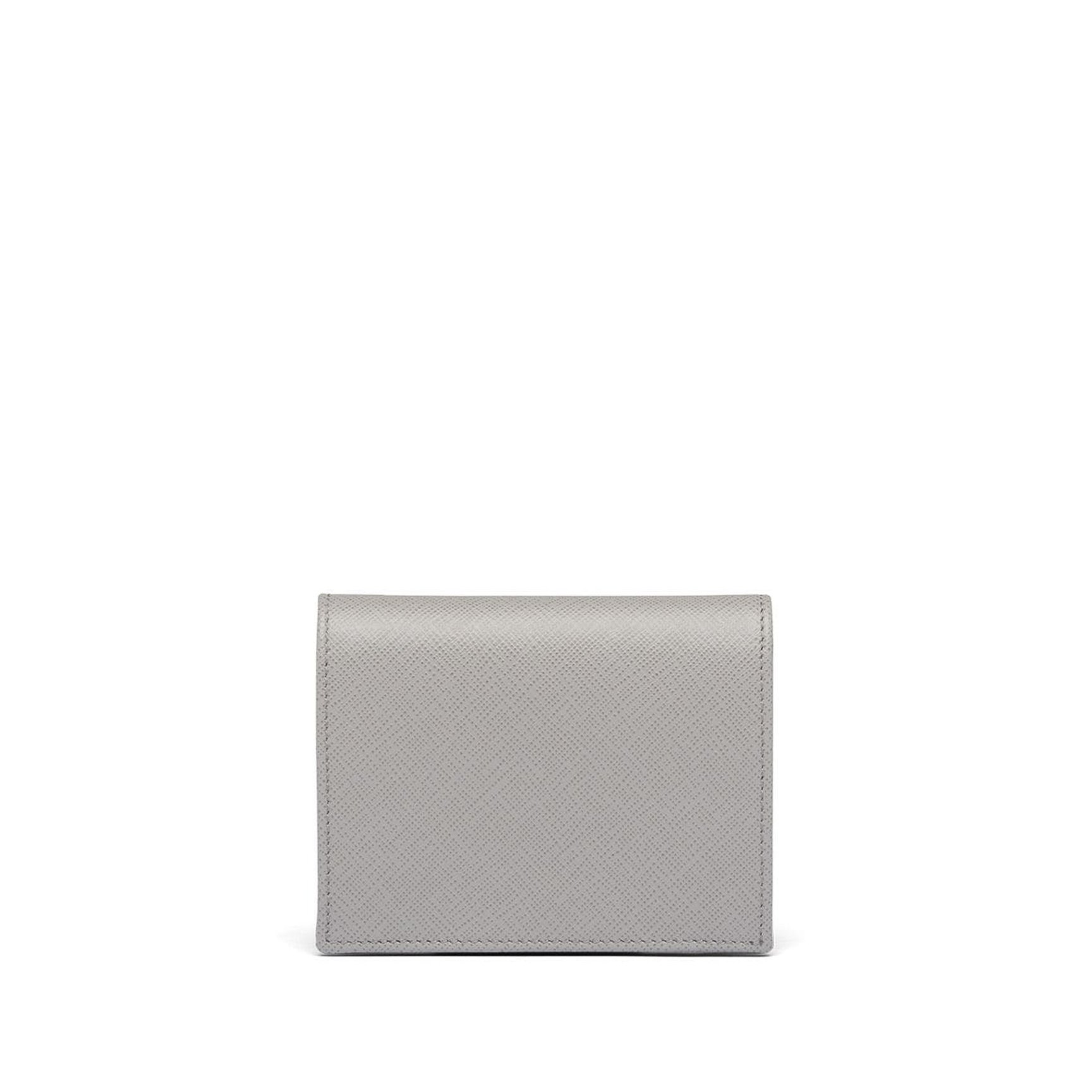 グレーのボディ×ゴールドロゴの組み合わせが美しく洗練された佇まい。「プラダ(PRADA)」のウォレットはバッグの中にあるだけで気持ちまで膨らむような存在感があります。