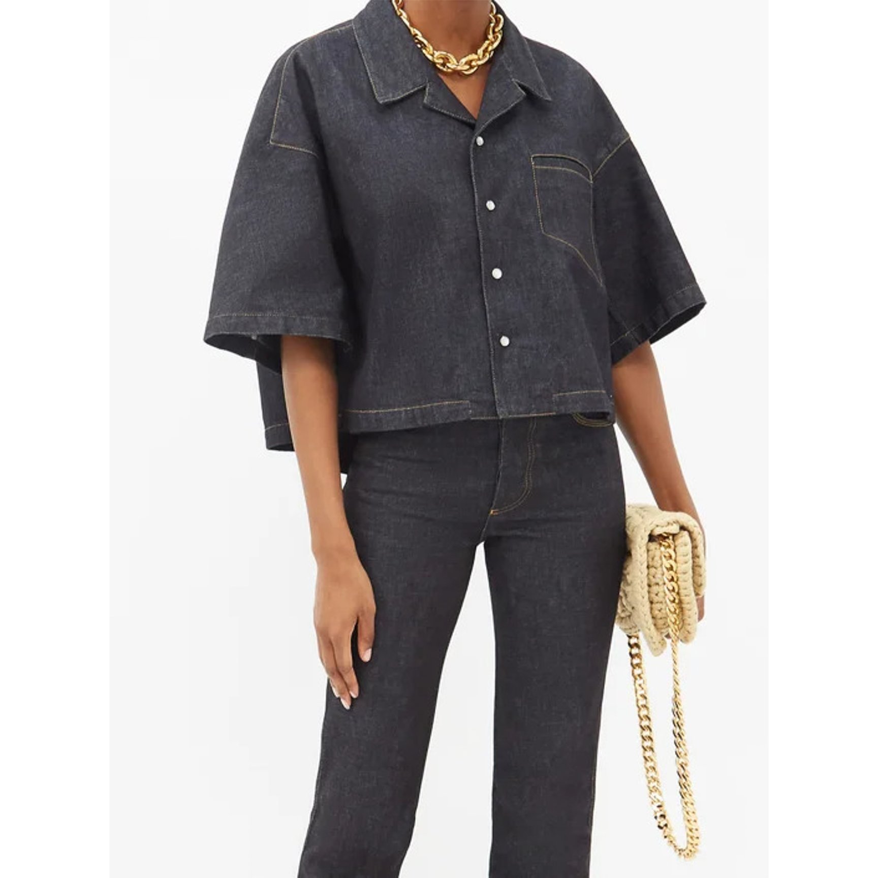 BOTTEGA VENETA クロップド ショートスリーブ デニムシャツ ¥121,000(関税・消費税込)