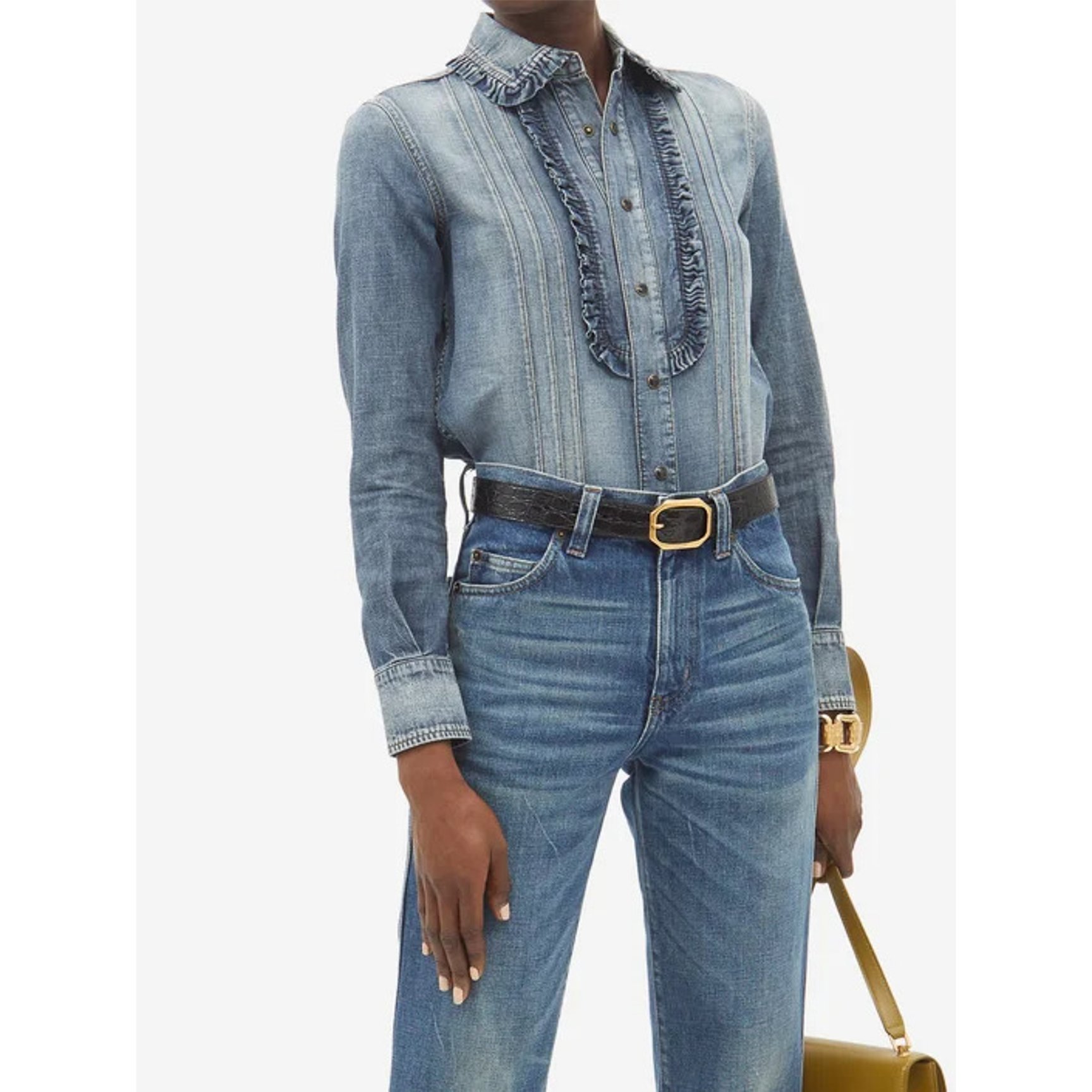 SAINT LAURENT フリル コットンデニムシャツ ¥126,500(関税・消費税込)