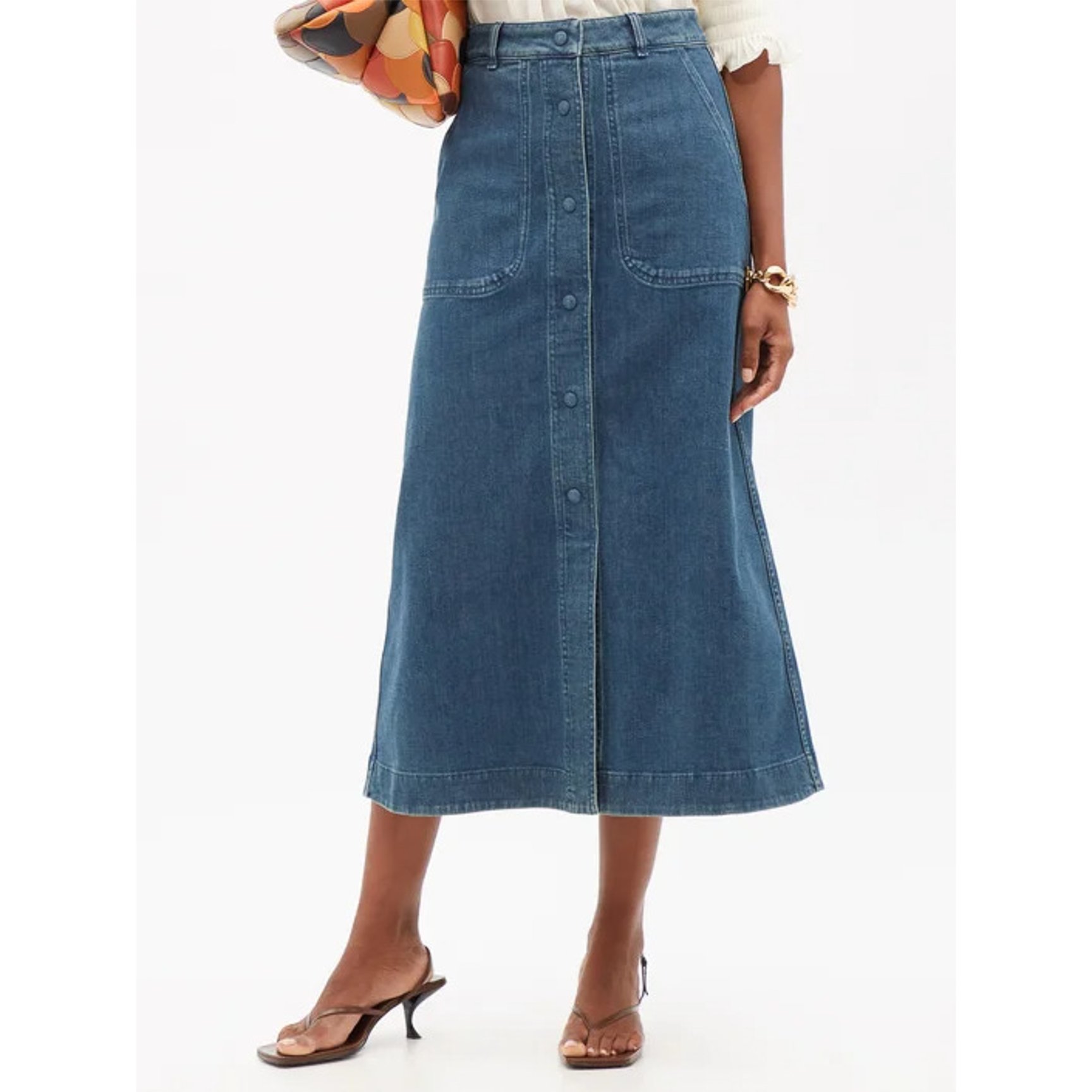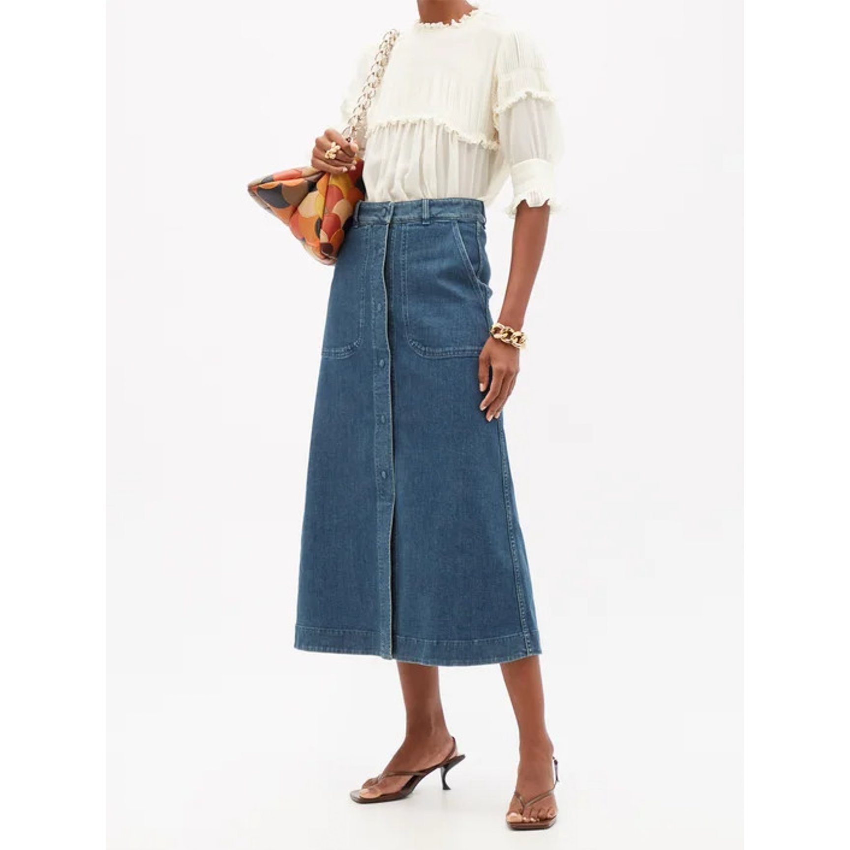 「クロエ(Chloé)」のデニムスカートは、ハイライズのAラインシルエットに程よい女性らしさが薫り、大人のデニムスタイルを叶えてくれます。どこかヴィンテージ感のある大きめのポケットもポイント。