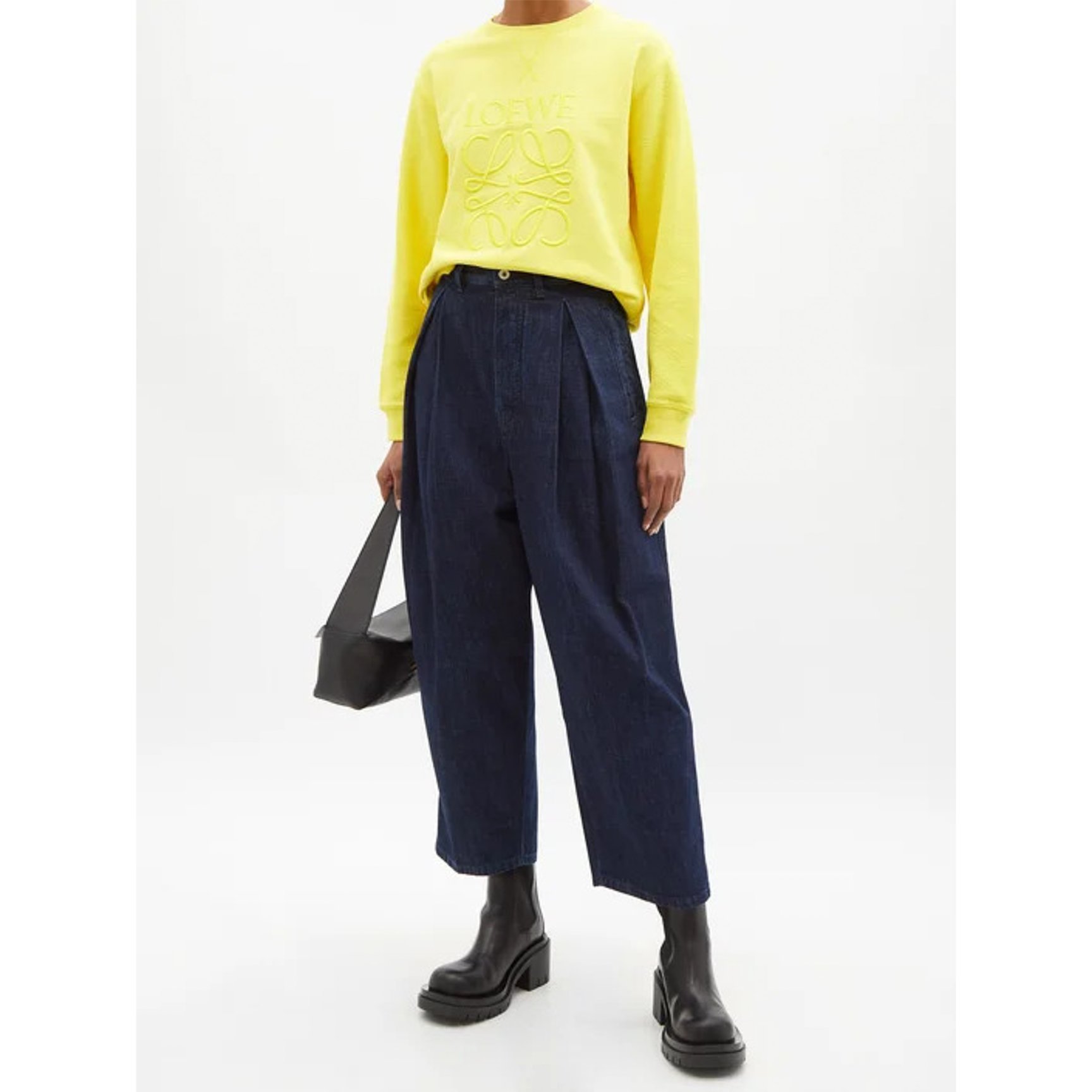 コットンデニムを採用した「ロエベ(LOEWE)」のブルージーンズ。タック入りのワイドなシルエットながら、クロップド丈なのでコーディネートを好バランスに仕立ててくれます。ハイカットブーツや、ハイカットスニーカーなどと組み合わせるのが楽しい一着。