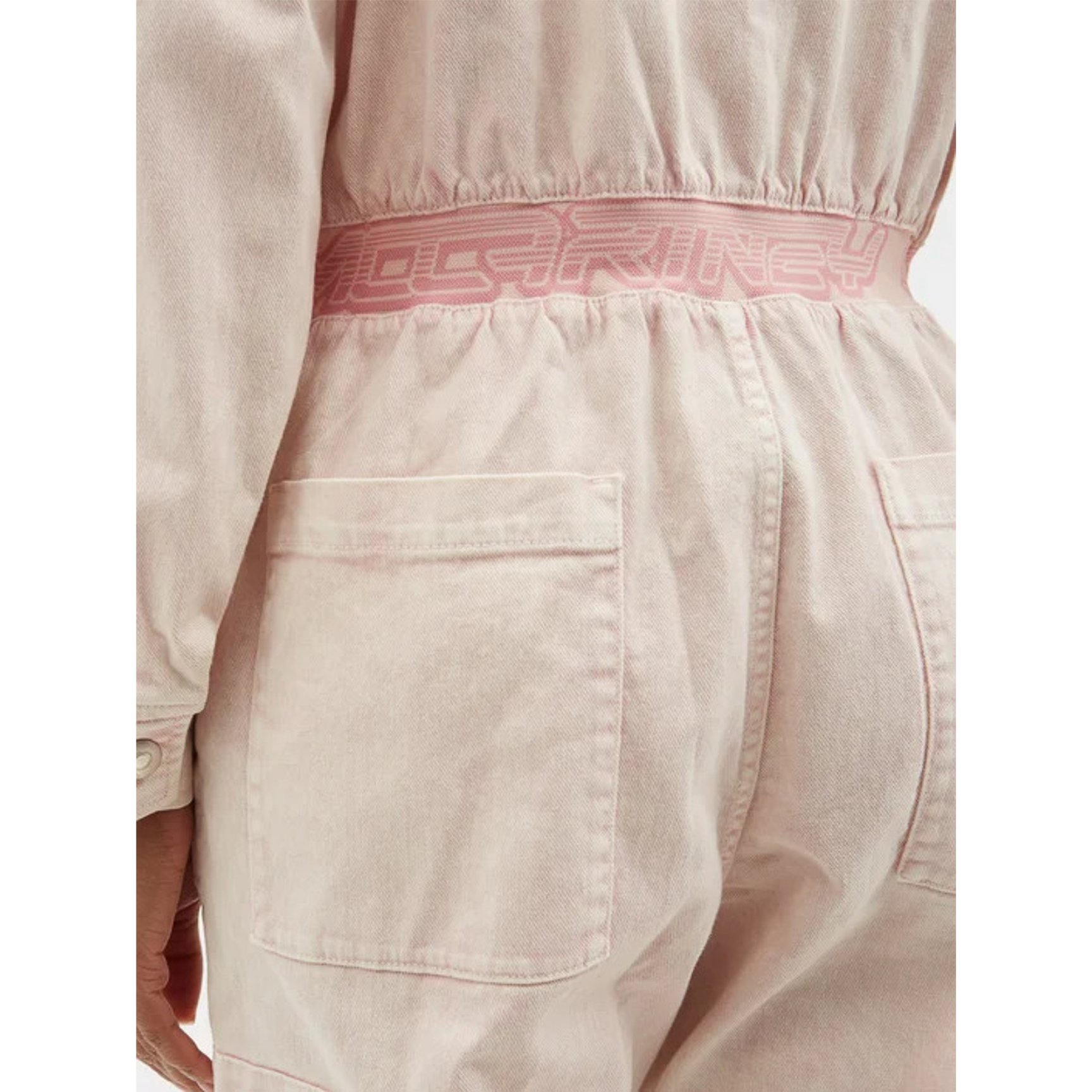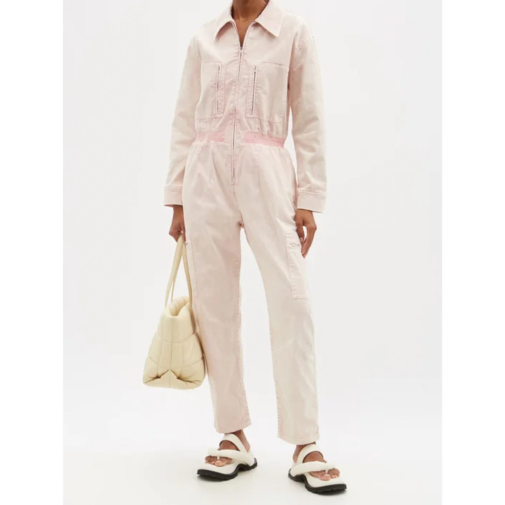 メンズライクなジャンプスーツを、ベビーピンクでほんのりキュートに仕上げたこちらは「ステラ マッカートニー(STELLA McCARTNEY)」のもの。ウォッシュをかけたデニムや、ロゴ入りのウエストバンドがレトロなアクセント。