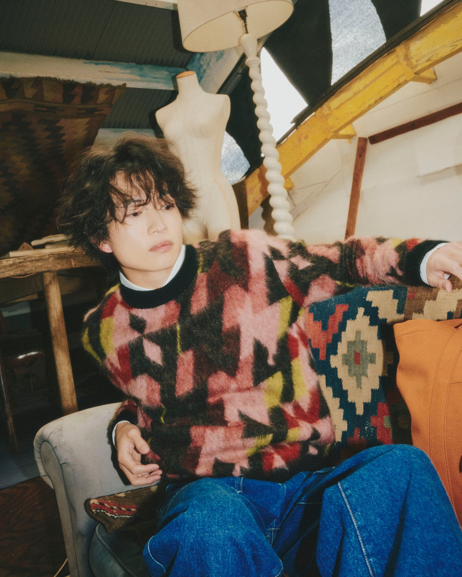 多忙を極める人気俳優の朝は早い。眠たい朝は、つい手に取りたくなる目にも温かいカラフルなシャギーニットを主役に、安定のゆるっとデニムとオレンジトートを合わせて支度は完成。落ち着きがありながら華やかな色彩で、定番のスタイルを冬仕様にチェンジ。