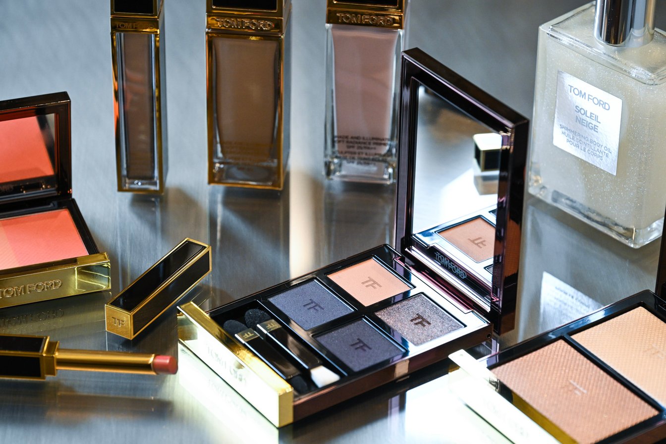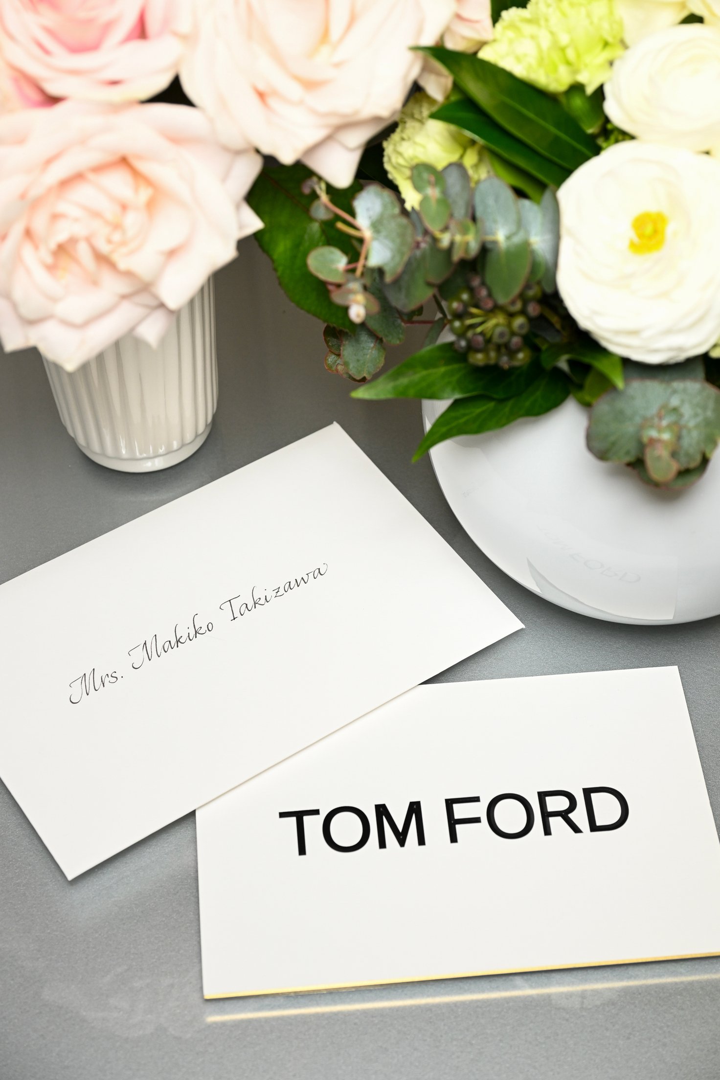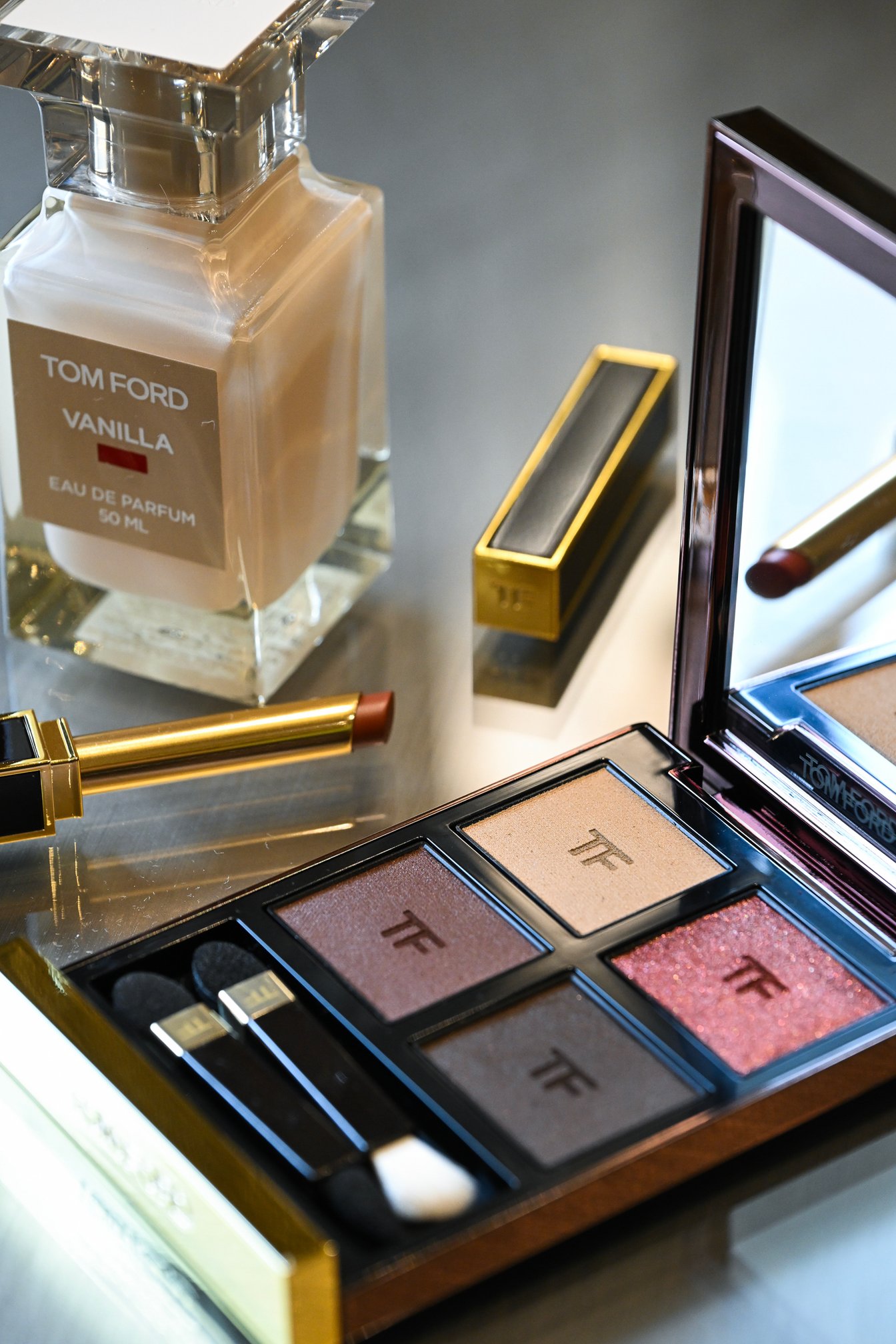 カフェの近くにはトム・フォードの店舗が。店内にはレディトゥウェアやサングラスのほか、フレグランスコレクションがずらり。また、メイクアイテムが揃う専用スペースも充実しています。ショーウィンドウはちょうどフレグランス「バニラ セックス」のオブジェが飾られていました。