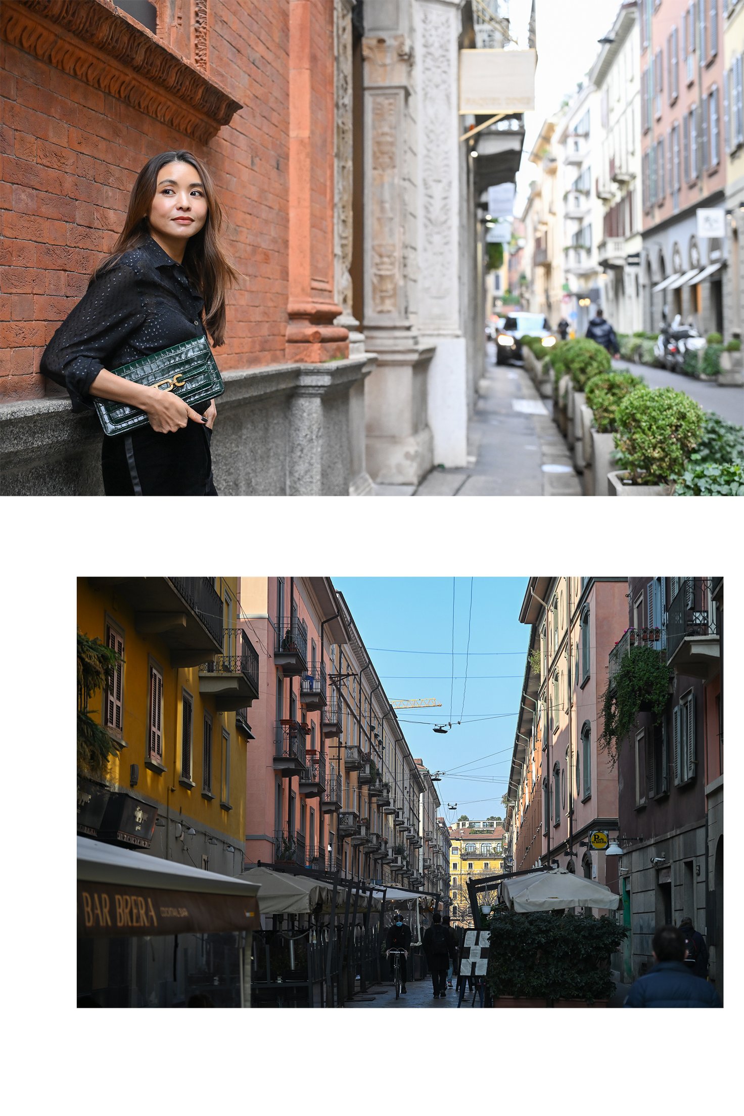 「ミラノには素敵なミラネーゼがたくさんいて、メイクやファッション、スタイルの刺激を受けます。日本と全く異なる街並みも、もちろん刺激的。歴史的な建物が多く、どこを歩いていても写真に残しておきたくなるような街でした」。