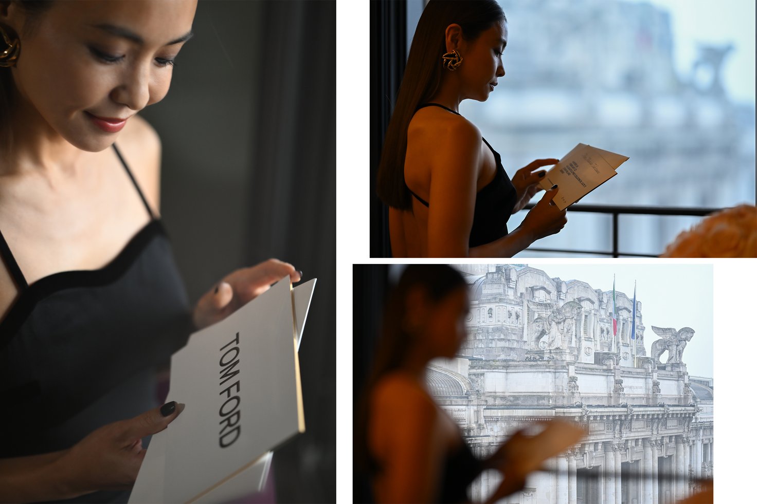 「今回貴重な経験をさせていただき、本当に光栄でした。トム・フォード ウーマンの凛とした強さと、しなやかな美しさを間近で体感して、とても刺激的でした。まだ日本での発売前に使わせていただいたスリム リップ カラー シャインは長時間つけていてもしっとりとした質感が続いて心地よかったです。ミラノのさまざまな場所で撮影しましたが、やはりラストのドゥオーモは最高でした。撮影中、雨や曇りが続いたのですが、最後の最後に青空が見え、夕陽が指してきた瞬間はとても美しく、思い出に残っています」。