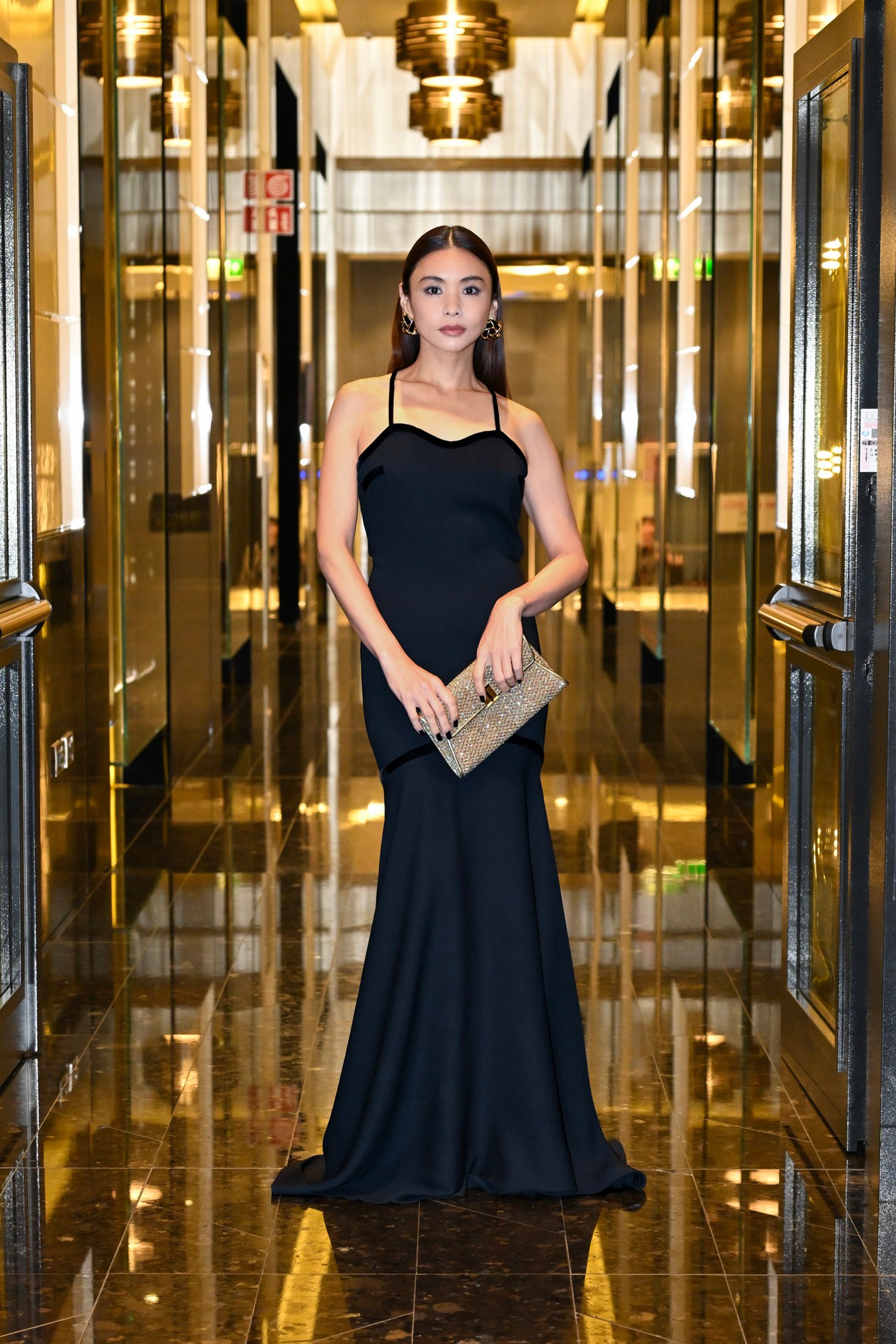 滝沢さんが思い出深い日の1着に選んだのは、なめらかなボディラインを際立たせるマーメイドシルエットのブラックドレス。ストラップや切り返しに取り入れたベルベット素材がシックなスタイルのアクセントに。