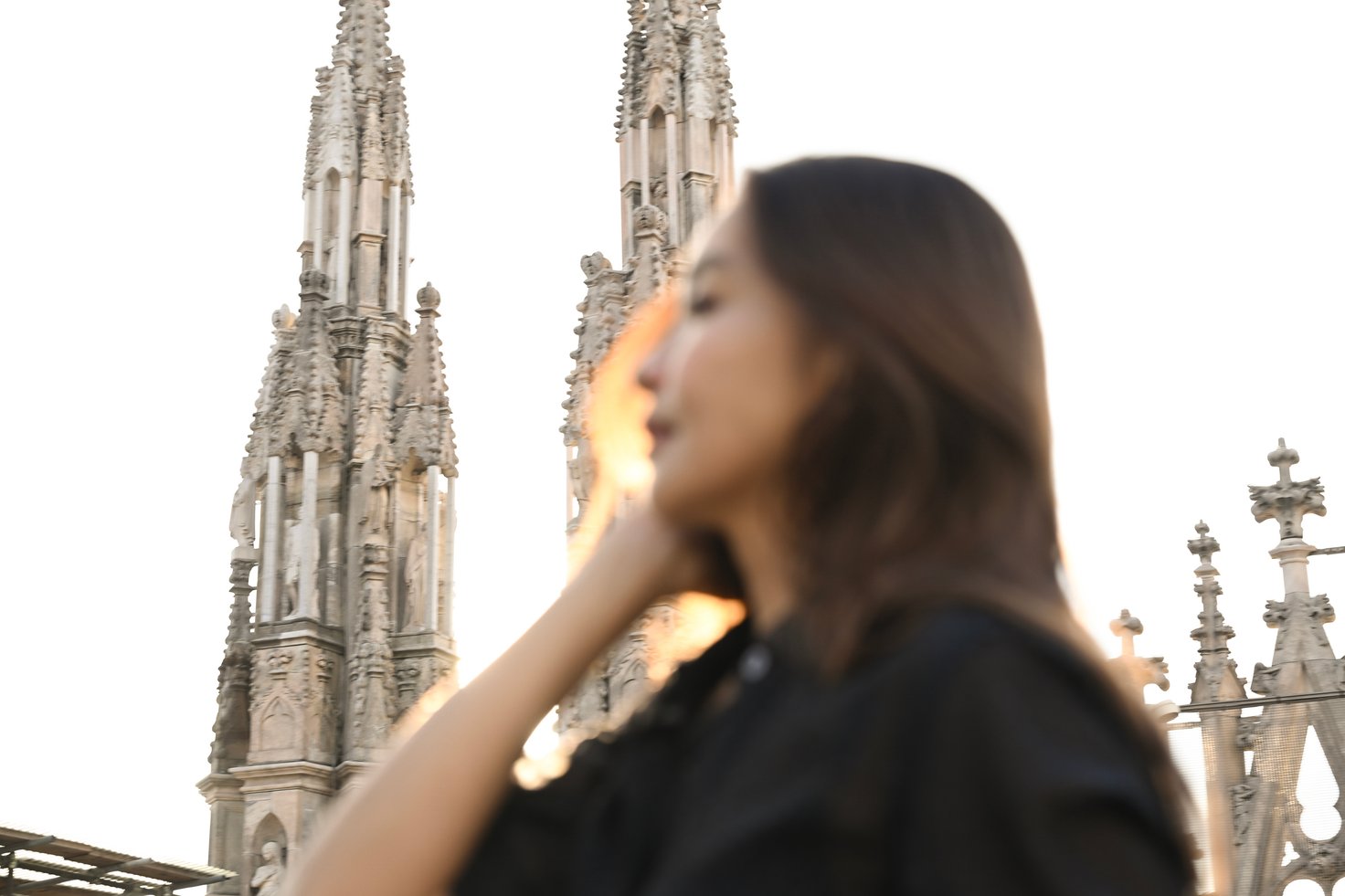 いつ訪れても圧倒的な美しさに目を奪われるドゥオーモ大聖堂ですが、1日の中でもわずかなゴールデンアワーはさらに格別。ミラノでの短い滞在を振り返り、滝沢さんもエモーショナルな気分に。今回の撮影の感想を教えてくれました。
