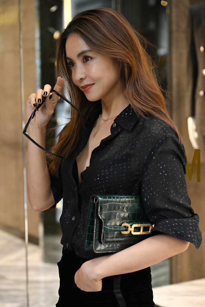 昨晩のショーでトム・フォードが提案するスタイルに魅了されたという滝沢さん。昨晩の華やかなドレスから、今日はシックでありながらセクシーさもある、カジュアルなシーンにもマッチするコーディネートに。口元にはスリム リップ カラー シャインの「100 100」をオン。ナチュラルな血色感のロージー ブラウンは、シーンを問わずエレガンスをまとうことができます。