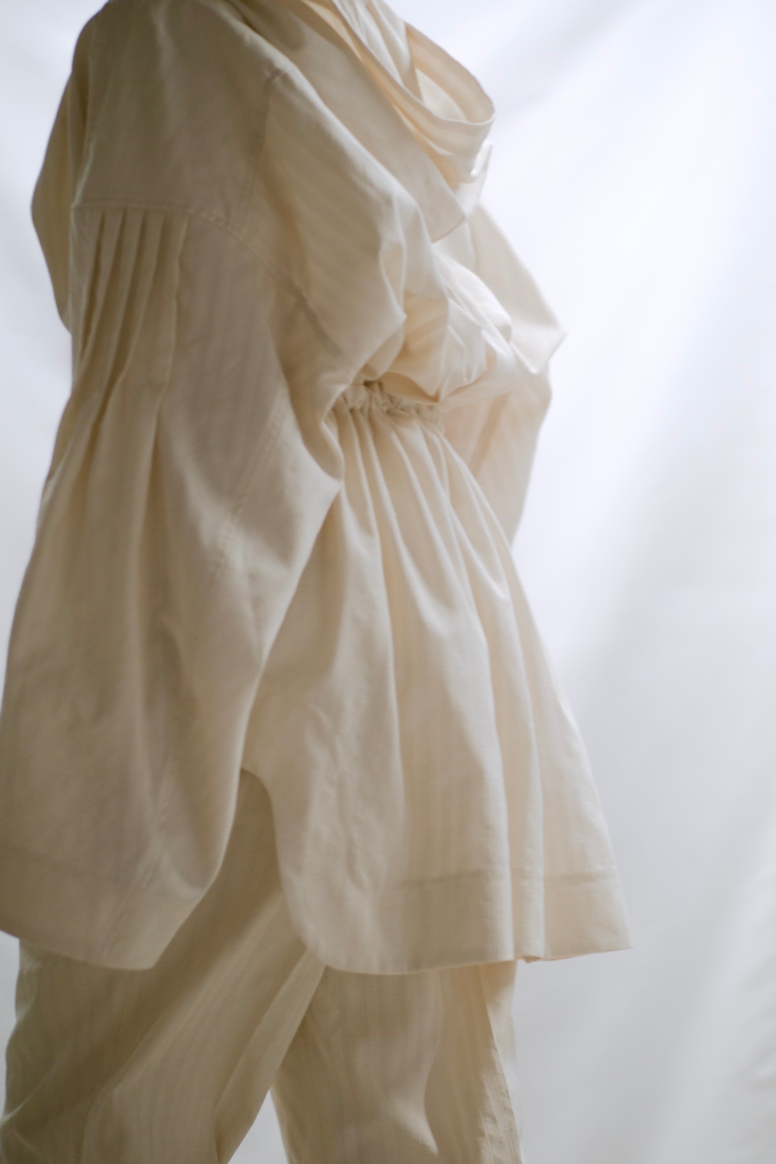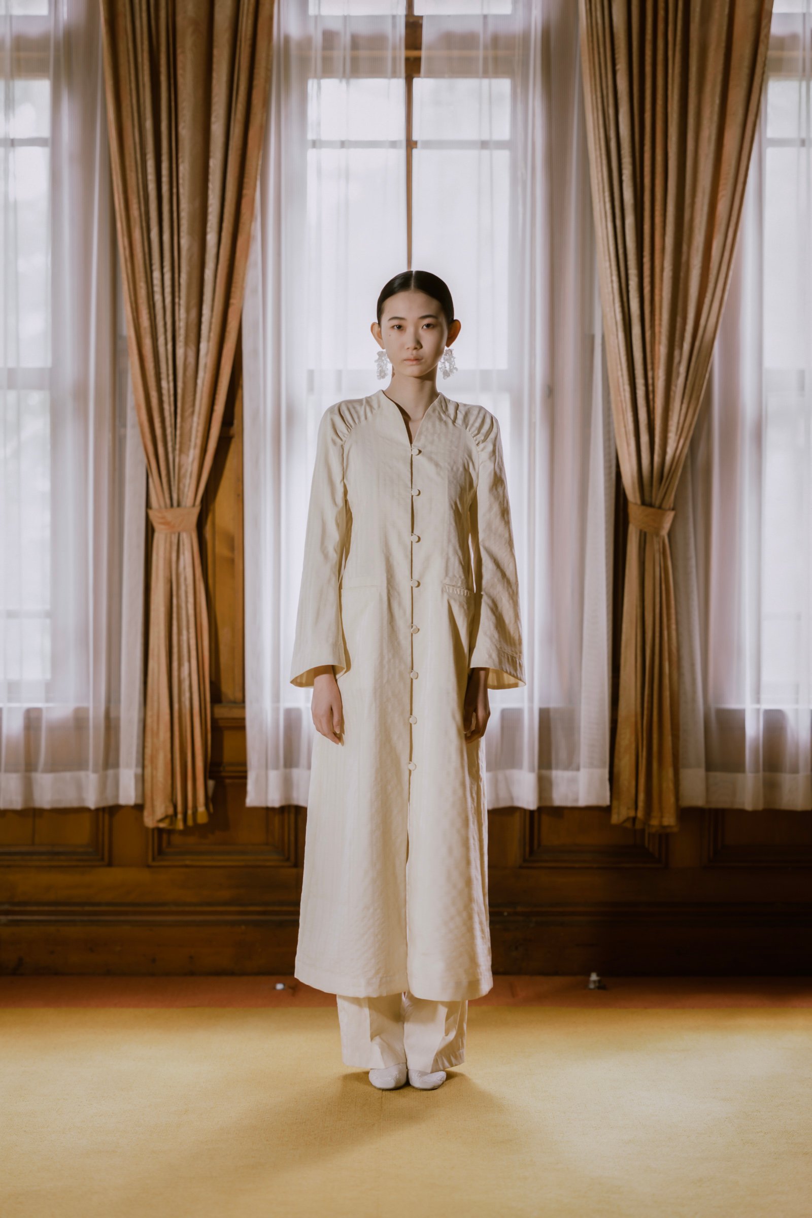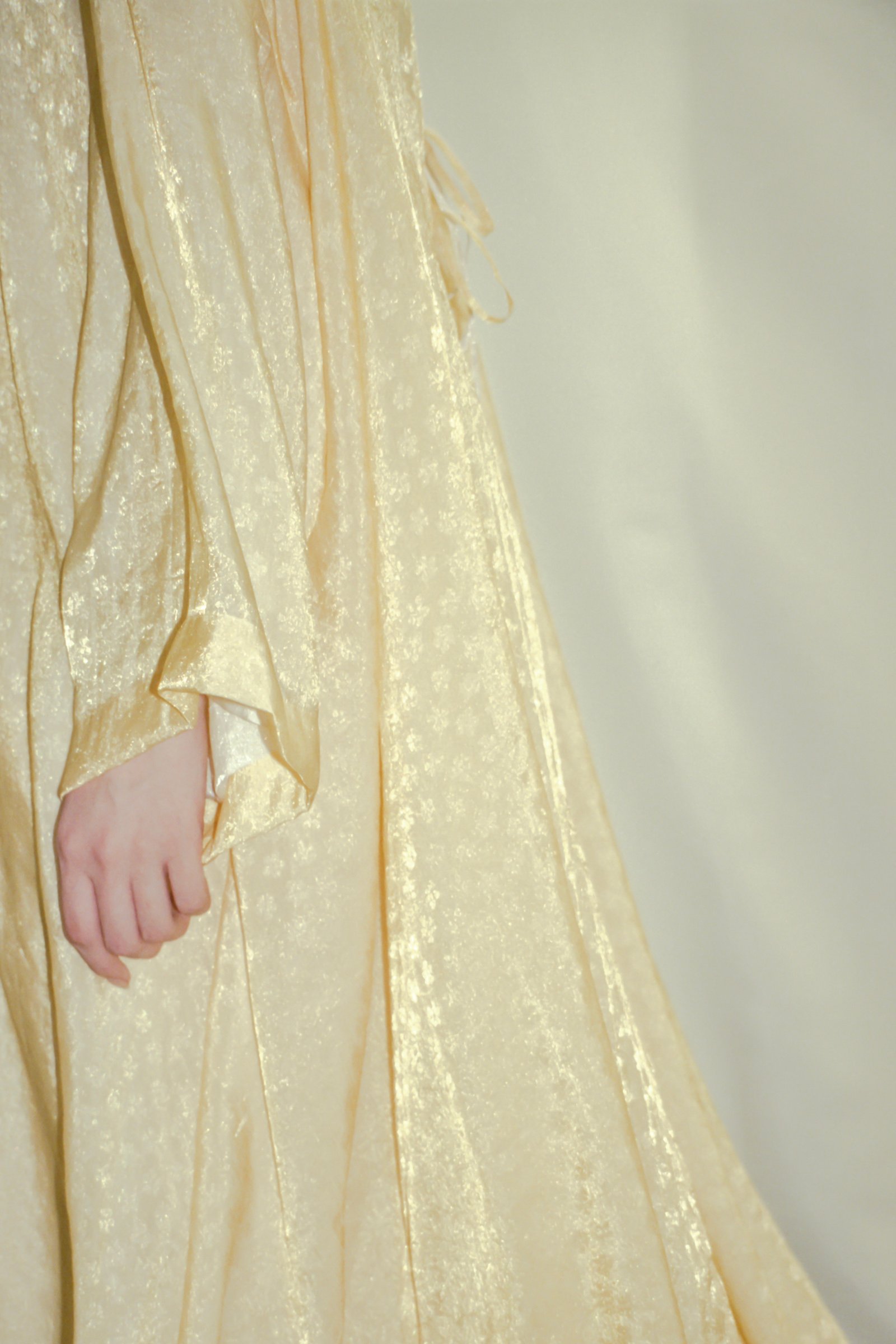 黒河内からの手紙のようなコレクションノートには、最後に「今回の洋服は、私の数ヶ月の記憶の色をしている。それをまとって、10年目のいま新たな窓を開けようとしているのだと思う」と記されていた。思い出を呼び起こし想像を広げながら制作されたコレクションは、時間を感じさせるがふわりと軽く、包み込まれるような優しさを併せ持っている。