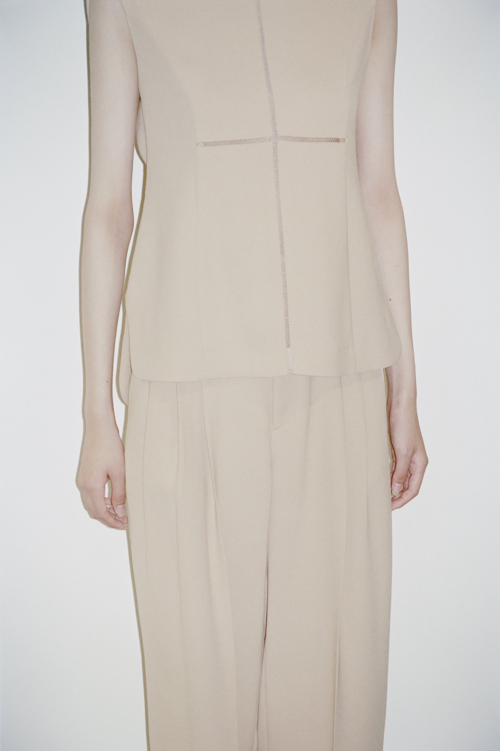 デザイナー 黒河内真衣子が手がけるマメ クロゴウチの2021年春夏コレクションのテーマは「Window(窓)」。窓が持つ内と外の2つの世界を分かち繋ぐという役割と、風をはらむカーテンから着想を広げ、経過する時間や淡い記憶が表現されている。
