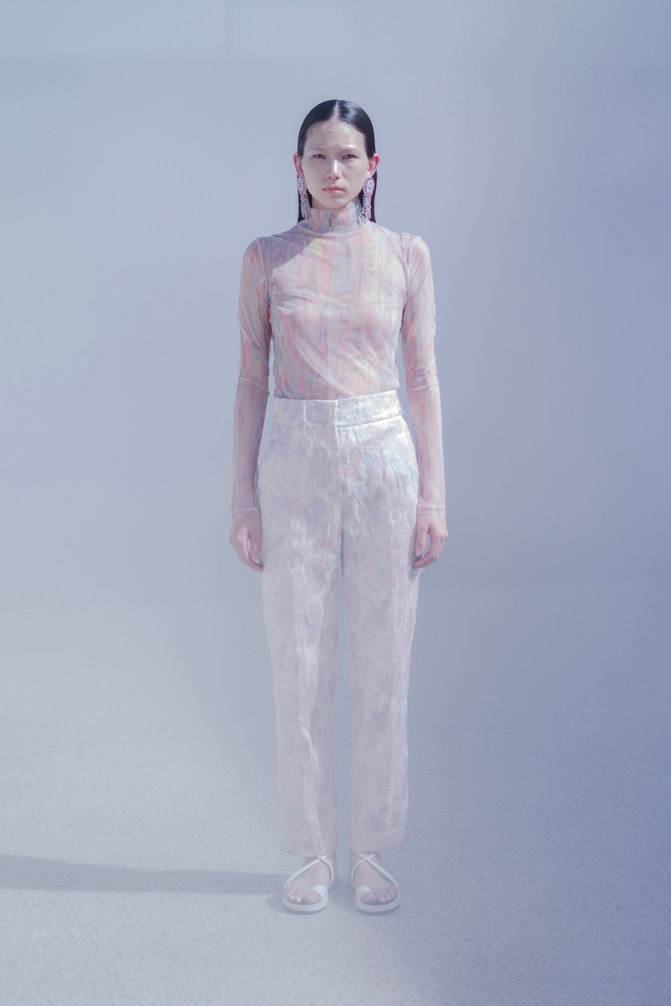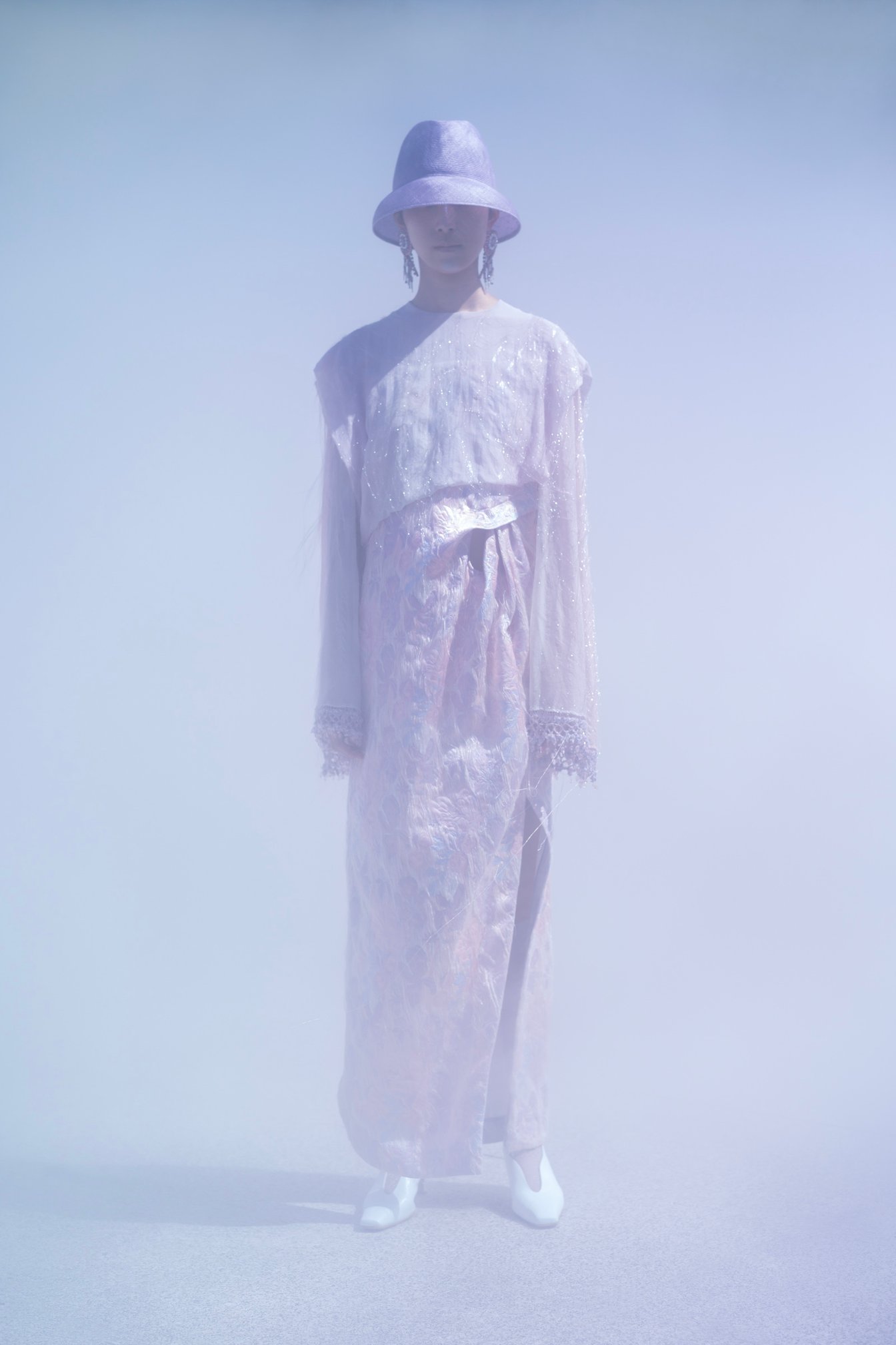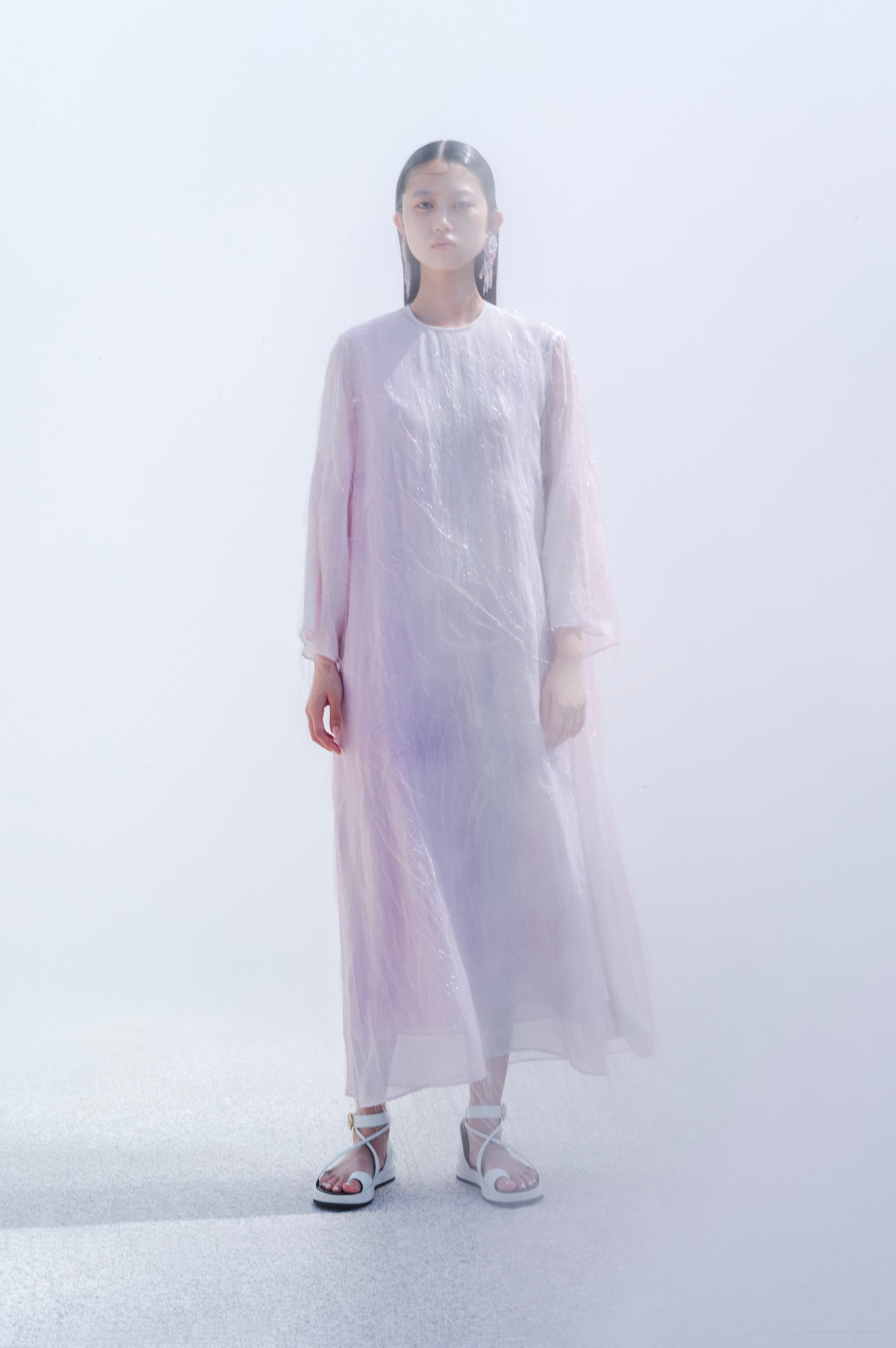 コレクション制作のベースとなったのは黒河内が生まれ育った長野。今年の春に⻑野県立美術館で開催したブランド10周年の展覧会の準備を進める中で感じた春の訪れと、故郷での遠い記憶が着想源で、淡い色のグラデーションと繊細なテクスチャーとなってコレクションに落とし込まれている。