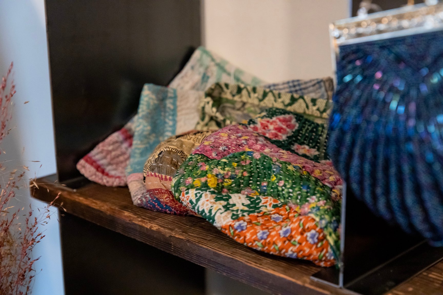 「私が着たい!着られないけど絶対に手元に置いておきたい!」と、直感でアイテムを選ぶようにしています。デザインや手触りの良さももちろん大切ですが、ちょっとしたダメージのあるアイテムも魅力的です。例えば、アイテムのダメージを見た瞬間、「味があるアイテムだなあ」「自分でちょっと繕って愛着に変えちゃおう!」なんてことをあれこれ思いを巡らせことができるアイテムは、すかさずピックしてしまいますね。