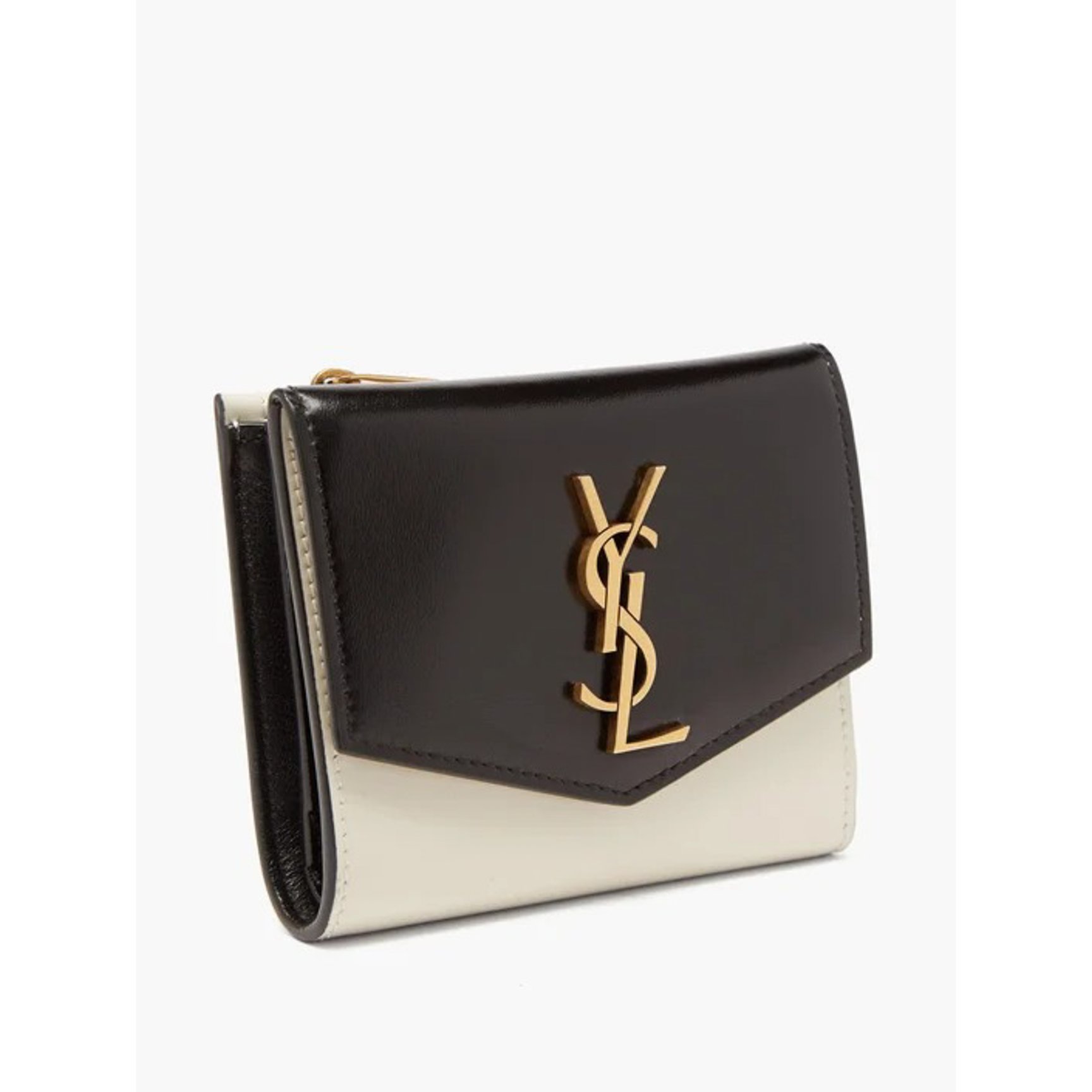 ハンサムなムードと、シーンを選ばないカラーで安心感もあるブラックウォレット。「サンローラン(SAINT LAURENT)」の二つ折り財布は、清楚なホワイトとのバイカラーが大人の洗練さを醸すおしゃれなアイテム。ゴールドのYSLロゴがセンシュアルに輝きます。