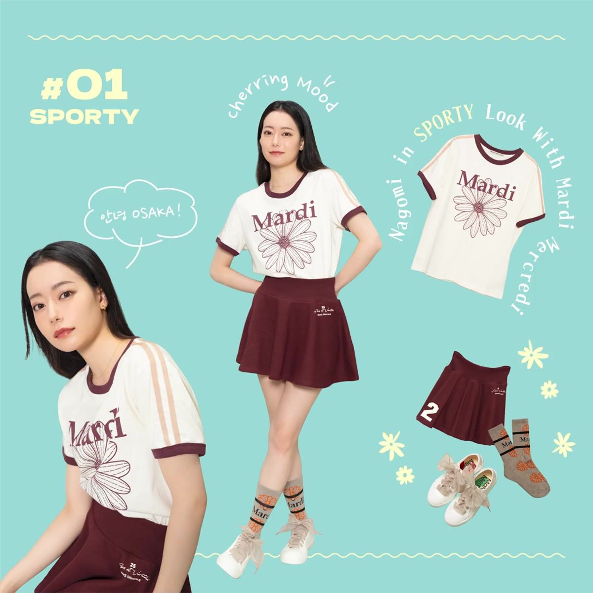韓国発の人気ブランド「マルディメクルディ(Mardi Mercredi)」が、ついに大阪に初店舗をオープン。オープニングイベントに駆けつけたYouTuberでZ世代のファッションアイコン なごみさんが、ブランドのアイテムでコーディネートした3つの異なるスタイルで登場。SPORTY・GIRLY・CLASSICの3ルックを通して、定番からトレンドアイテムまで、マルディメクルディの魅力を着こなしのポイントとともに紹介します。