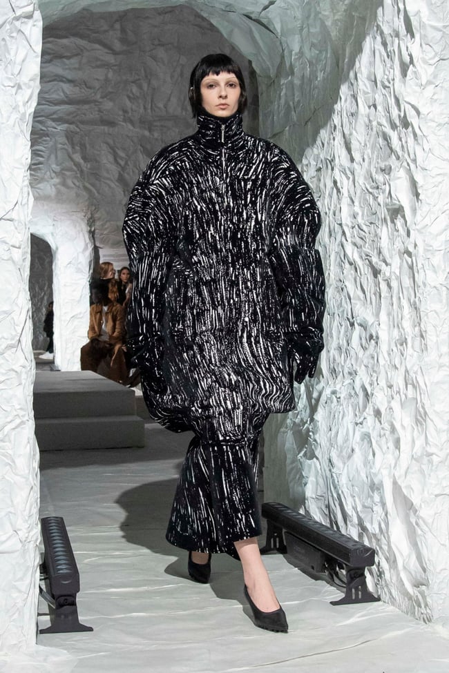 主人公が16世紀から20世紀まで300年以上にわたり時代を超えて生き、男性から女性に転換するというジェンダーを扱った小説「オーランド」で知られるイギリスの小説家ヴァージニア・ウルフ(Virginia Woolf)がファッション界に与えた影響は「コム デ ギャルソン(COMME des GARÇONS)」に「メットガラ(Met Gala)」と枚挙に遑がなく、「マルニ(MARNI)」を手掛けるフランチェスコ・リッソ(Francesco Risso)もまたその限り。ヴァージニア・ウルフがかつて友人を田舎に招待する手紙の中で、「服は持ってこないでください」と書き綴った手紙に着目し、その解釈について「私は、彼女が彼らに裸で到着することを示唆しているのではなく、服の懲罰的な構造とその象徴的な意味をすべて剥ぎ取るように勧めているだけだと理解しました」と語るリッソが作り出した2024−25年秋冬コレクションショーは、「マルニと言えば柄やカラフルさ」というイメージをも彼岸に押しのけるほど、黒を中心にプリミティブなデザインでまとめられた。