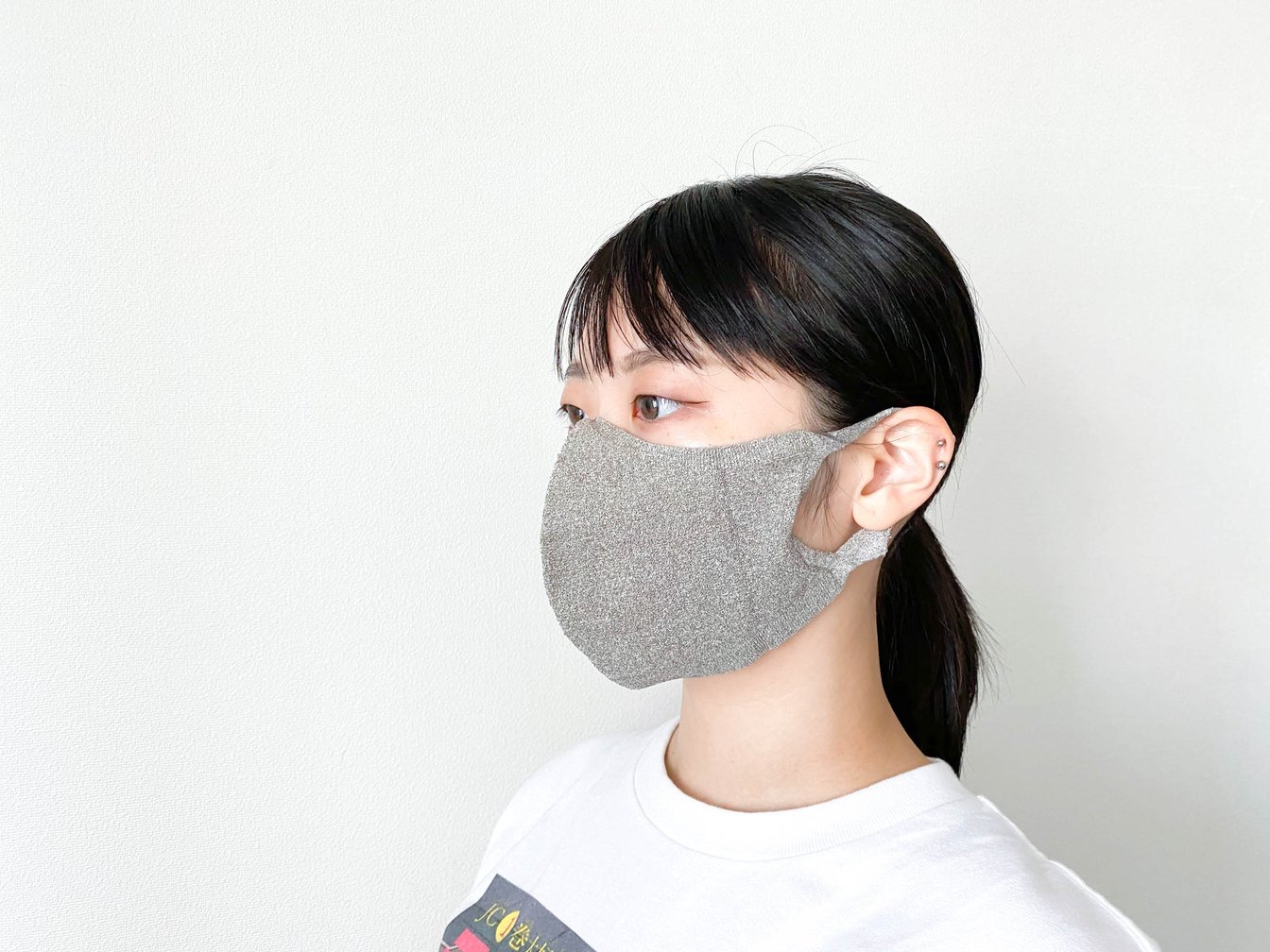 銀めっき繊維を織り込んだマスクのため、光の当て方によって生地がキラキラと見えます